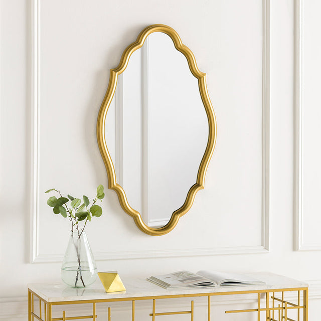 Elevate your interiors with the timeless beauty of the Mooskirchen Traditional Wall Mirror. Designed with a refined gold finish and an intricately sculpted specialty frame, this mirror adds a touch of Old World charm and regal sophistication to any space. Crafted from durable manufactured wood and shaped to command attention, the Mooskirchen Mirror brings warmth, tradition, and grandeur into your home. Whether you're styling a hallway, living room, or vanity space, this statement piece reflects both your taste and your spaceâ€â€literally and stylistically.