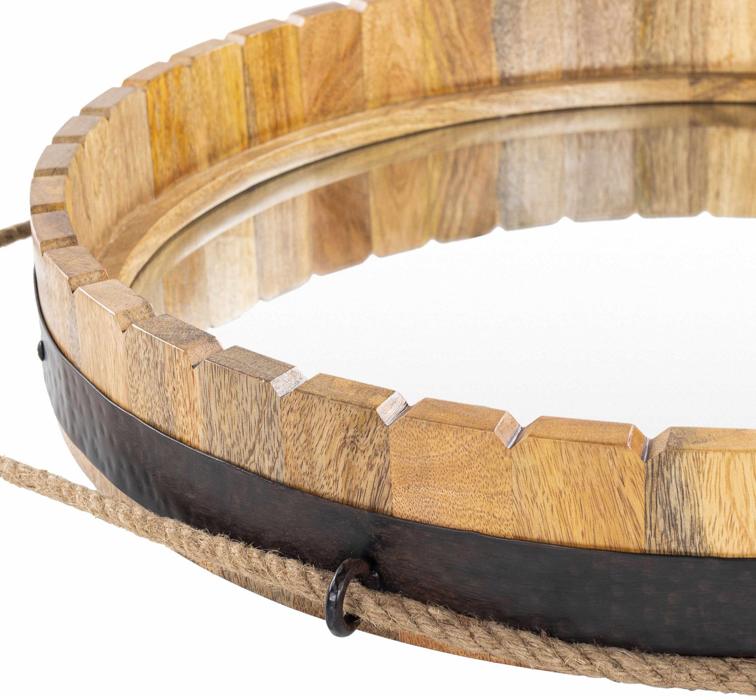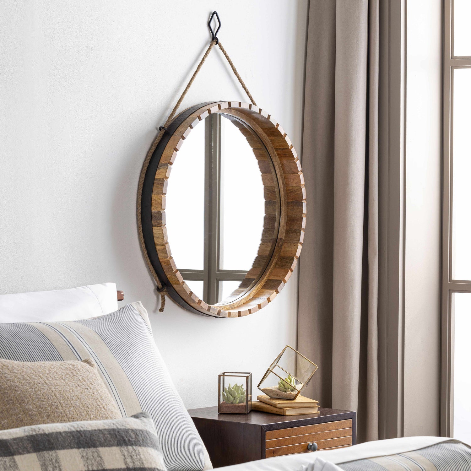 Enrich your walls with the Muller Traditional Wall Mirror, a beautifully handcrafted piece that blends classic design with artisanal quality. Featuring a warm brown wood frame in a graceful round silhouette, this mirror evokes the elegance of traditional interiors while remaining versatile enough for transitional or rustic spaces. Made in India from a combination of solid and manufactured wood, the Muller Traditional Wall Mirror reflects not just your image, but a legacy of craftsmanship and timeless style.