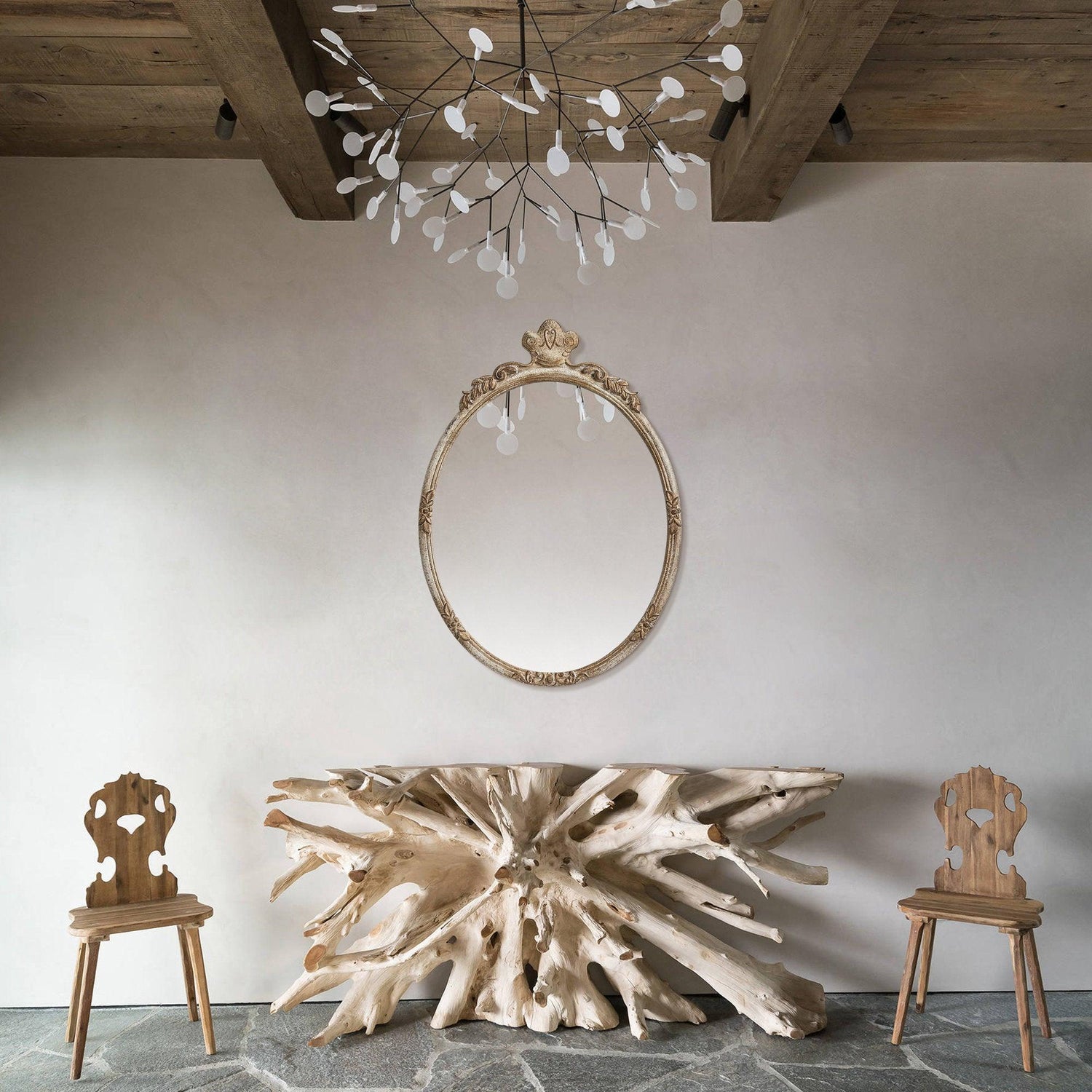 Transform your empty wall space with this rustic oval natural wood ornate framed mirror and make a bold yet sophisticated statement on your walls. The natural wood-toned finish complements the rest of your decor for a classic and casual style, while the slim frame helps protect the mirror's edges for durability. Ideal as wall decoration in the living room, dining room, bathroom, or bedroom