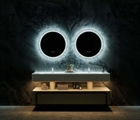 Frysta Round LED Frameless Mirror with Dimmer and Defogger