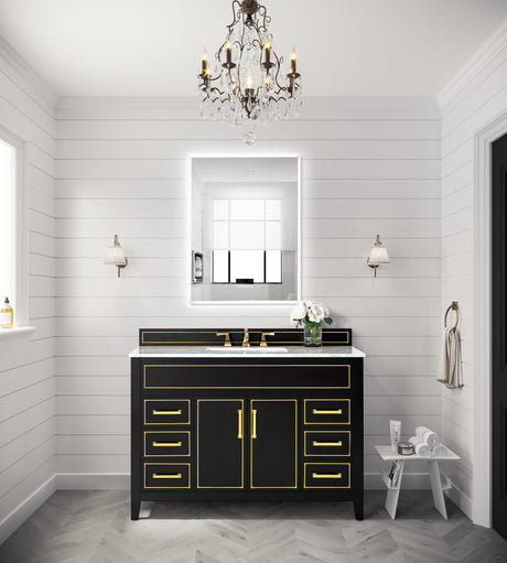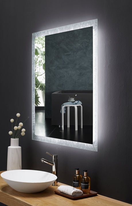 Frysta LED Frameless Rectangular Mirror Lighted Bathroom Vanity with Dimmer and Defogger