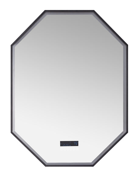 Otto LED Octagon Black Framed Lighted Bathroom Vanity Mirror with Bluetooth and Digital Display