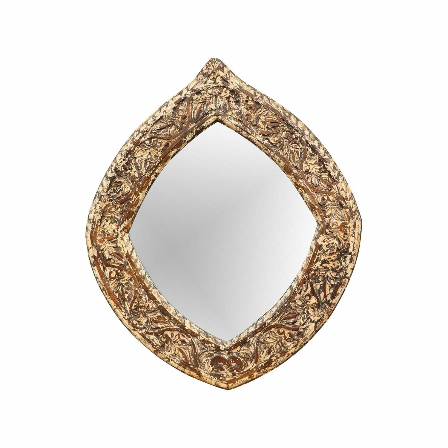 Farmhouse Style 27" x 32" Hand Carved Distressed Oval Shaped Mirror
