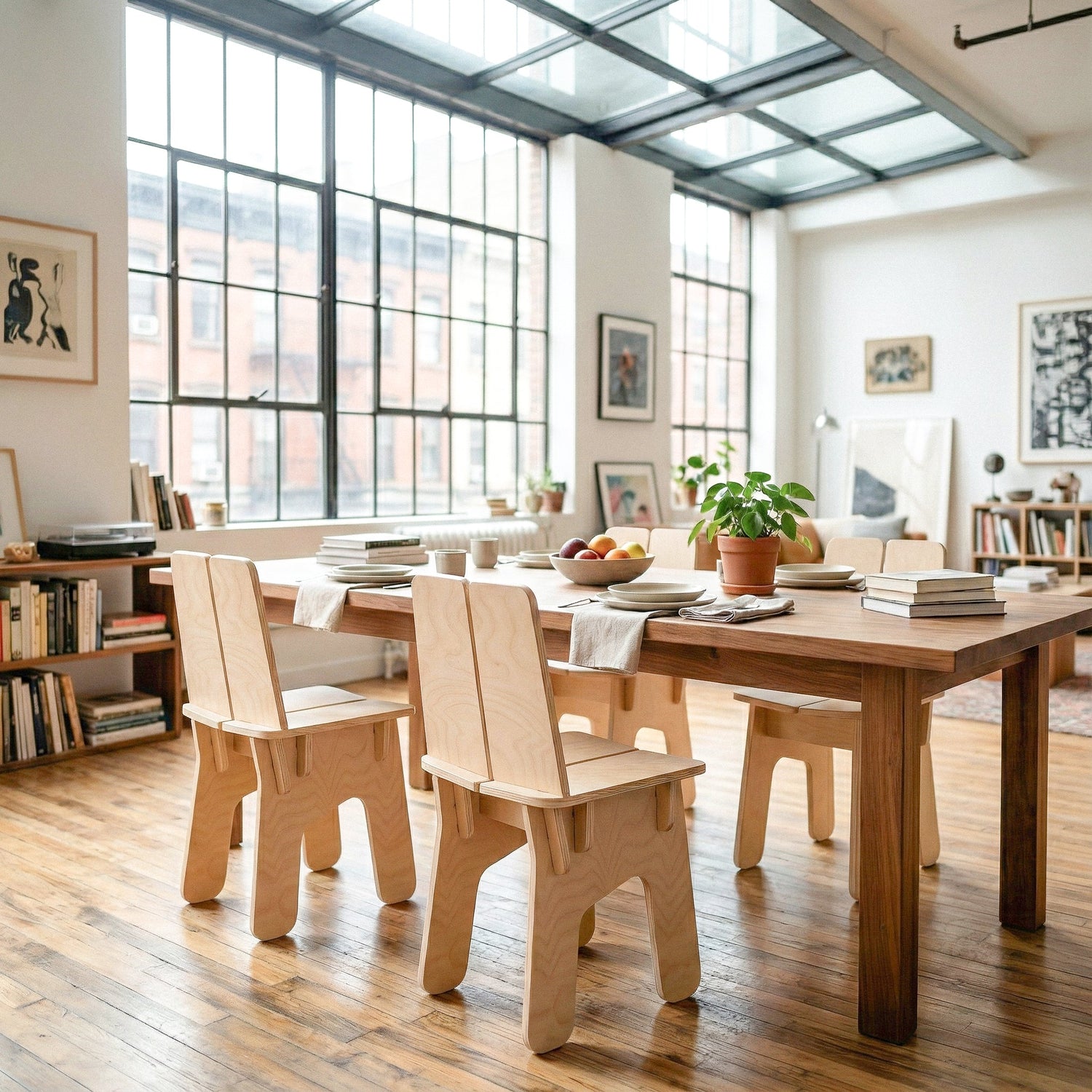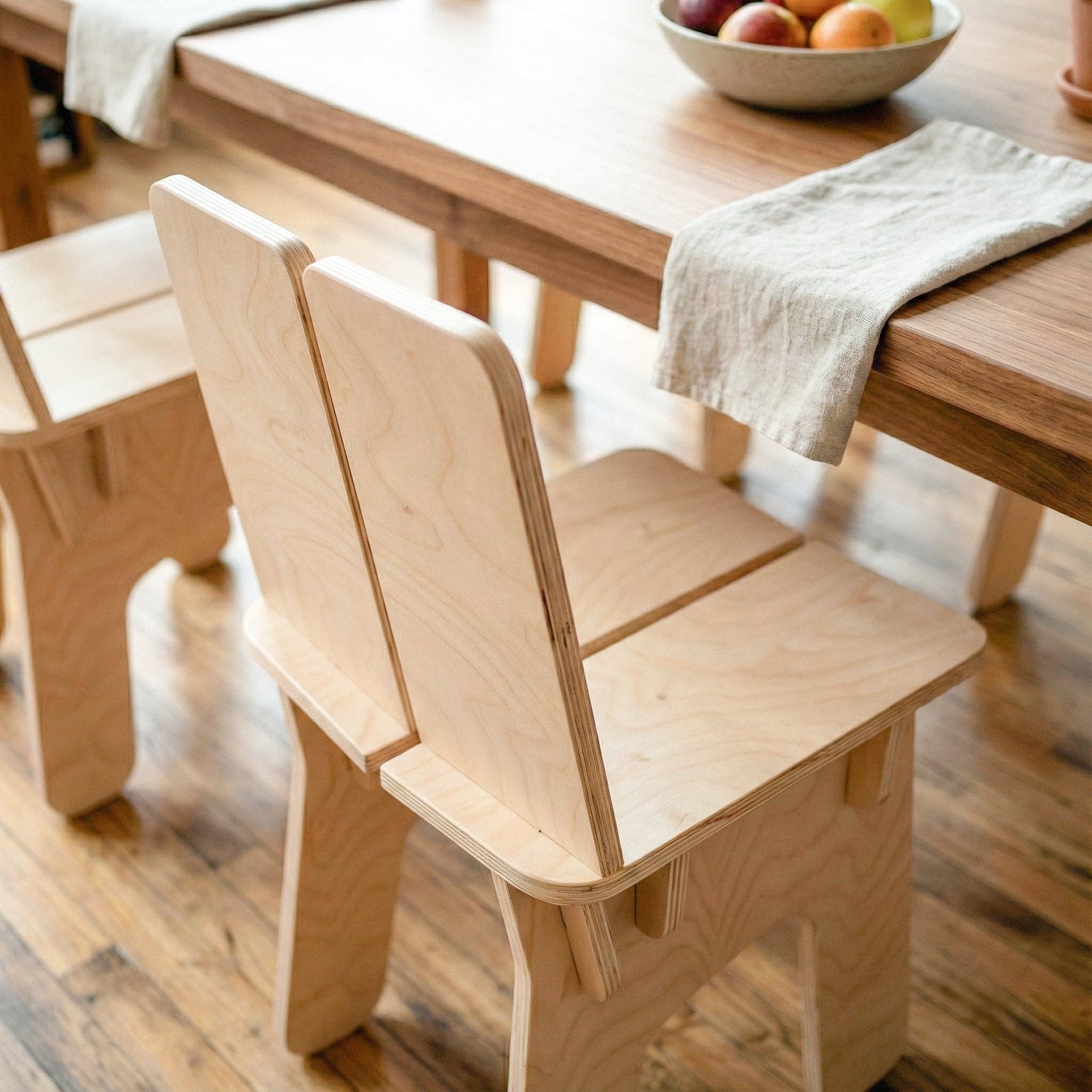 Introducing the Burij Chair, a stunning testament to the beauty of form and function. Crafted from eco-friendly Baltic Birch wood, this minimalist marvel boasts a warm, natural birch finish that blends seamlessly with any decor. Its compact footprint (16"x16"x31") makes it perfect for smaller spaces, while its surprisingly spacious seat offers ample comfort. But the Burij's true magic lies in its innovative design. Forget clunky tools and frustrating instructions – this chair assembles like a delightful wooden puzzle, snapping together in under a minute! No screws, no glue, just pure ingenious joinery that makes putting furniture together a breeze. It's perfect for young couples, frequent movers, or anyone who appreciates style without the assembly stress. Beyond its clever construction, the Burij Chair exudes timeless elegance. The smooth birch wood grain adds a touch of organic warmth to your space, while the clean lines and geometric form create a modern edge. Whether you're looking for a statement piece for your living room, a cozy accent for your bedroom, or a versatile chair for your home office, the Burij delivers on all fronts. And because sustainability matters, the Burij Chair is crafted with the planet in mind. Its Baltic Birch construction ensures exceptional durability and strength, while the eco-friendly design eliminates plastic and metal parts. Choose the Burij and bring not just beauty and functionality to your home, but also a conscious choice for the environment. So ditch the bulky furniture and embrace the effortless elegance of the Burij Chair. It's a puzzle worth solving, a piece of furniture that's as easy on the eyes as it is on the planet, and a testament to the joy of simple, sustainable design.