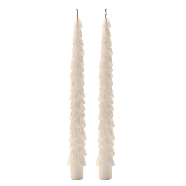 Bring festive charm to your holiday decor with our tree shaped taper candle set. This set of two beautifully crafted, non-toxic candles adds warmth and seasonal style to your home. Shaped like classic Christmas trees, these beautiful cream taper candles bring an elegant, festive touch to dining tables, mantels, or entryways. Create a warm glow that carries you through holiday dinners and festive gatherings with over 6 hours of burn time.