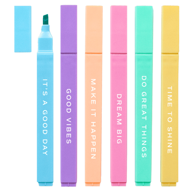 • Highlighters Read: It's A Good Day, Good Vibes, Make It Happen, Dream Big, Do Great Things, and Time to Shine