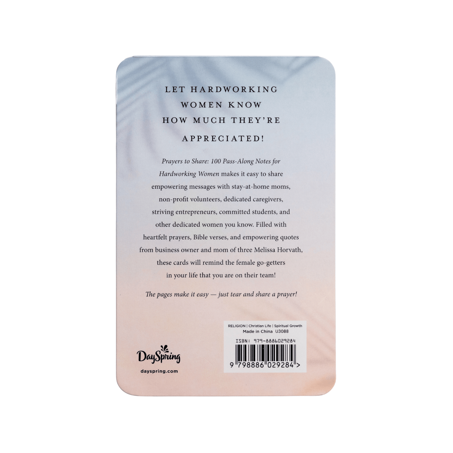 There are many hardworking women in our lives who rarely get the affirmation and recognition they deserve! This iteration of our popular Prayers to Share series offers readers a chance to change that, providing heartfelt prayers, selected Scriptures, and inspirational quotes from mother-of-three and business owner Melissa Horvath that are easy to tear and share. These messages are designed to empower stay-at-home moms, non-profit volunteers, dedicated caregivers, striving entrepreneurs, committed students, and other female go-getters who could use a healthy dose of appreciation.