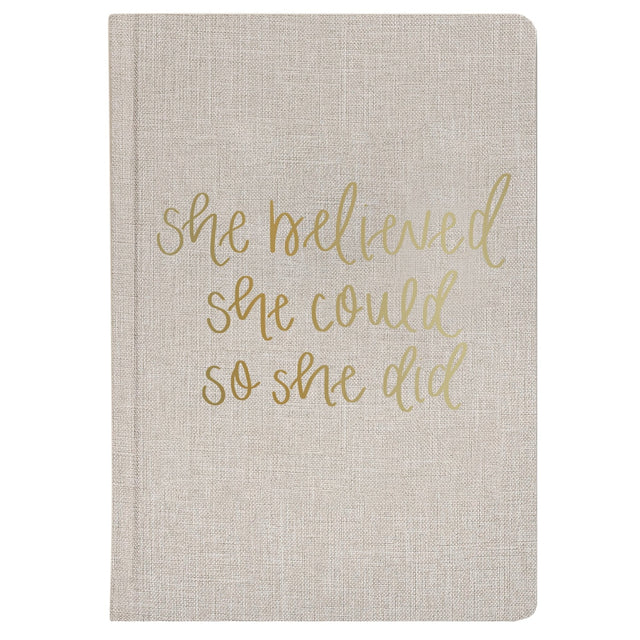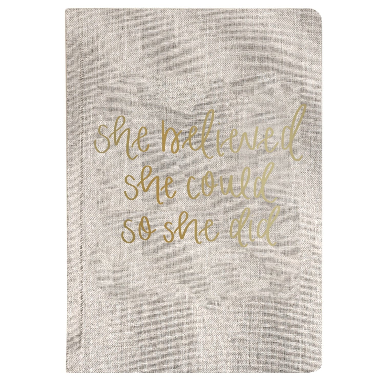 Write down all of your goals and dreams in our hand lettered She Believed She Could So She Did, Fabric Journal! With this chic, stylish, easy to write on notebook, there's no better place to jot down motivational notes, inspirational quotes, lists, and all of your great ideas! Perfect for work or school. This desk/office accessory makes a great gift!