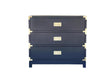 A modern take on the classic campaign chest, the Carlyle Campaign Dresser in Navy blends timeless design with everyday functionality. Signature recessed brass pulls and corner brackets nod to traditional campaign furniture, while the smooth painted navy finish brings a fresh, contemporary feel.
