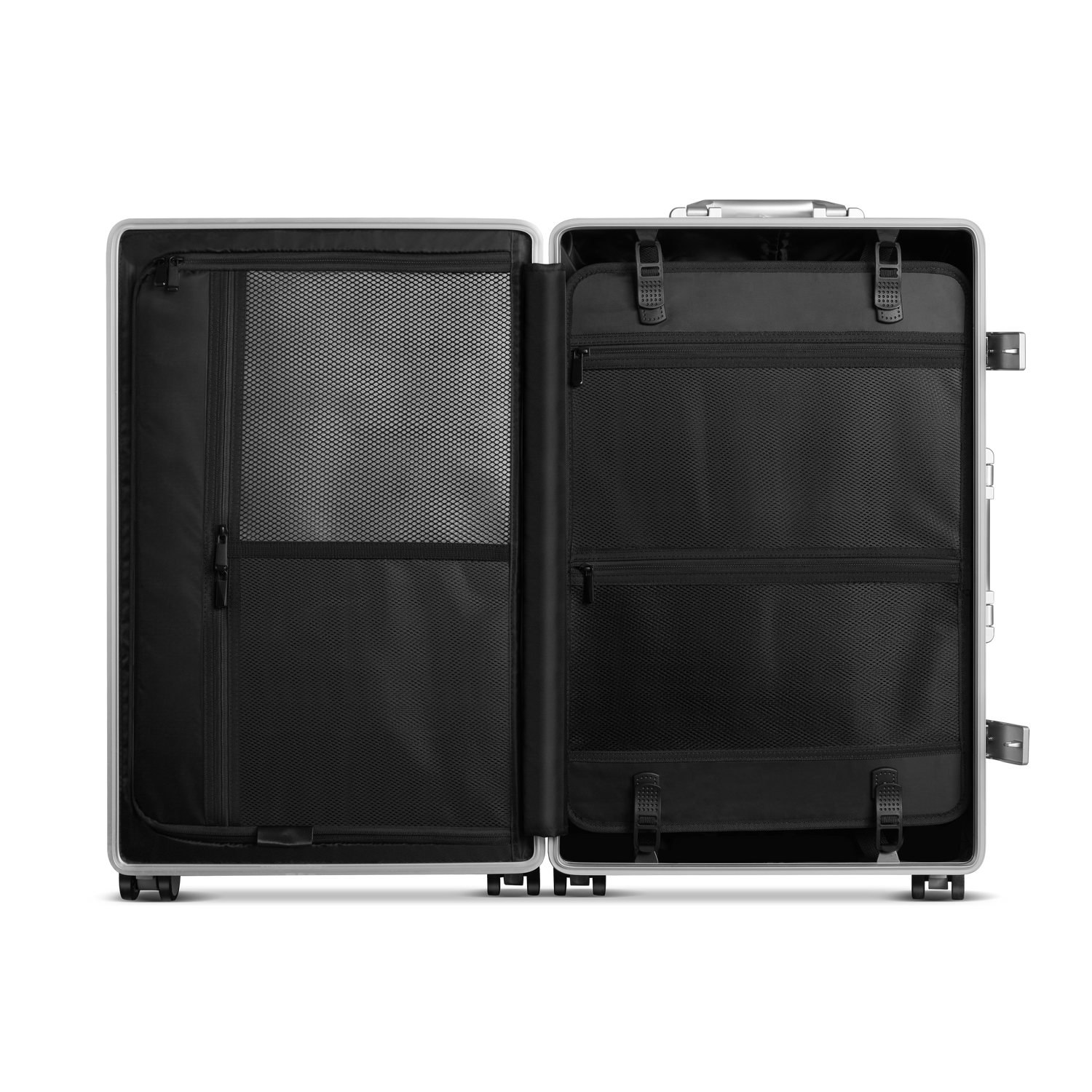 With the strength and durability to endure rough handling by baggage handlers, this rolling suitcase features a heavy-duty aluminum alloy hardshell exterior, rubber seals, a zipperless closure, a one-push-to-open TSA combo lock, and ultra-smooth 360° spinner wheels to ensure your belongings are secure and easy to carry when on the road for business or leisure.