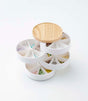 Swing into style. With a swivel and a slide, store all of your beloved accessories and trinkets in these chic organizers. Categorize your earrings, bracelets, and necklaces as you wish between the five tiers. Fan them out to let your baubles shimmer, sparkle, and shine, and close the wooden lid to protect from dust. This sectioned version comes with compartments galore, making it the perfect option to house a collection of smaller pieces that might otherwise get mismatched. Non-sectioned version also available.