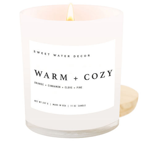 Warm and Cozy Soy Candle - White Jar - 11 oz
