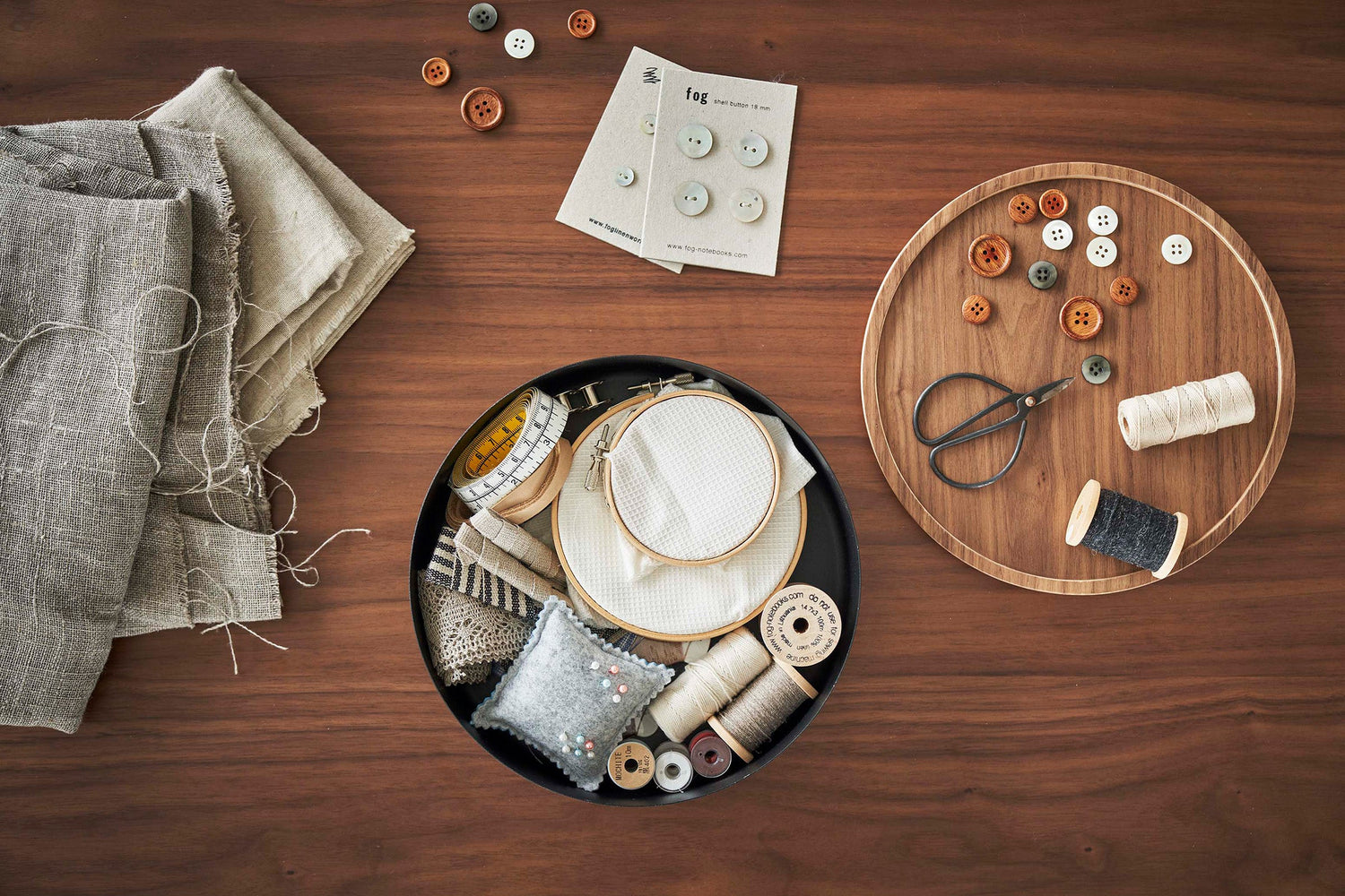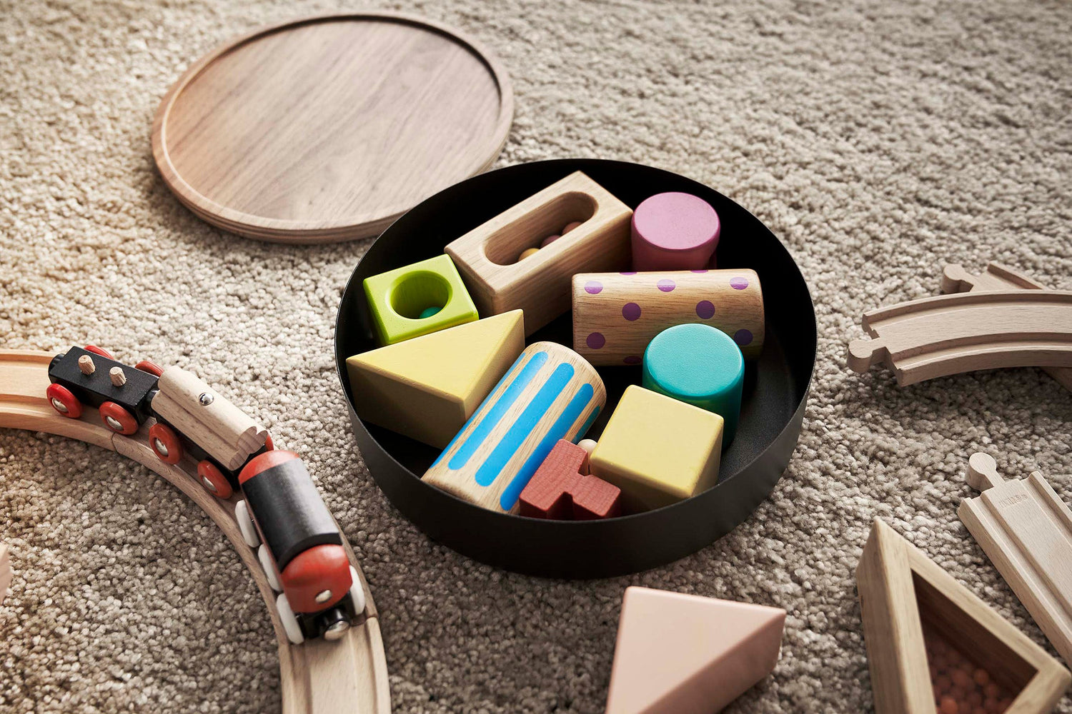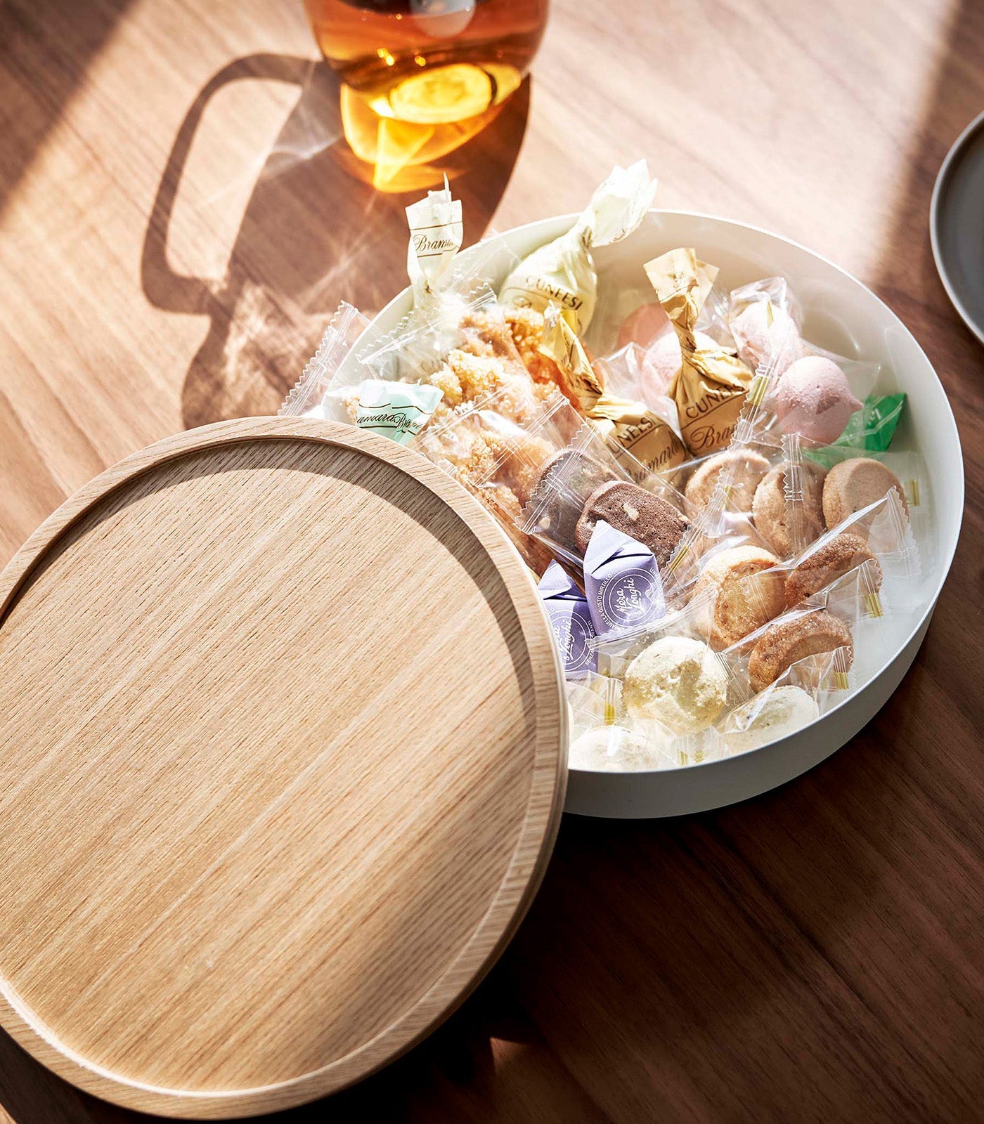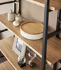Stack up on these delightful and unique round bins, sure to spruce up any everyday assortment from your tea snacks, sewing kits, or jewelry collections. The wooden lids bring a warm aesthetic to balance the modern steel construction. They also feature a lip around the rim that allows them to double as handy trays to keep your buttons and bobbins from rolling away.