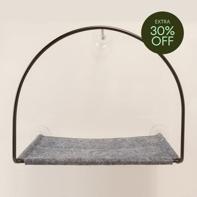 The minimalist steel arch turns your window into an art gallery, featuring your cat as the art (obviously). The strong grey felt is supportive enough to withstand vertical zoomies, but cozy enough for snooze sessions. Heavy-duty suction cups lock on tight, so you can relax while they relax, knowing it can