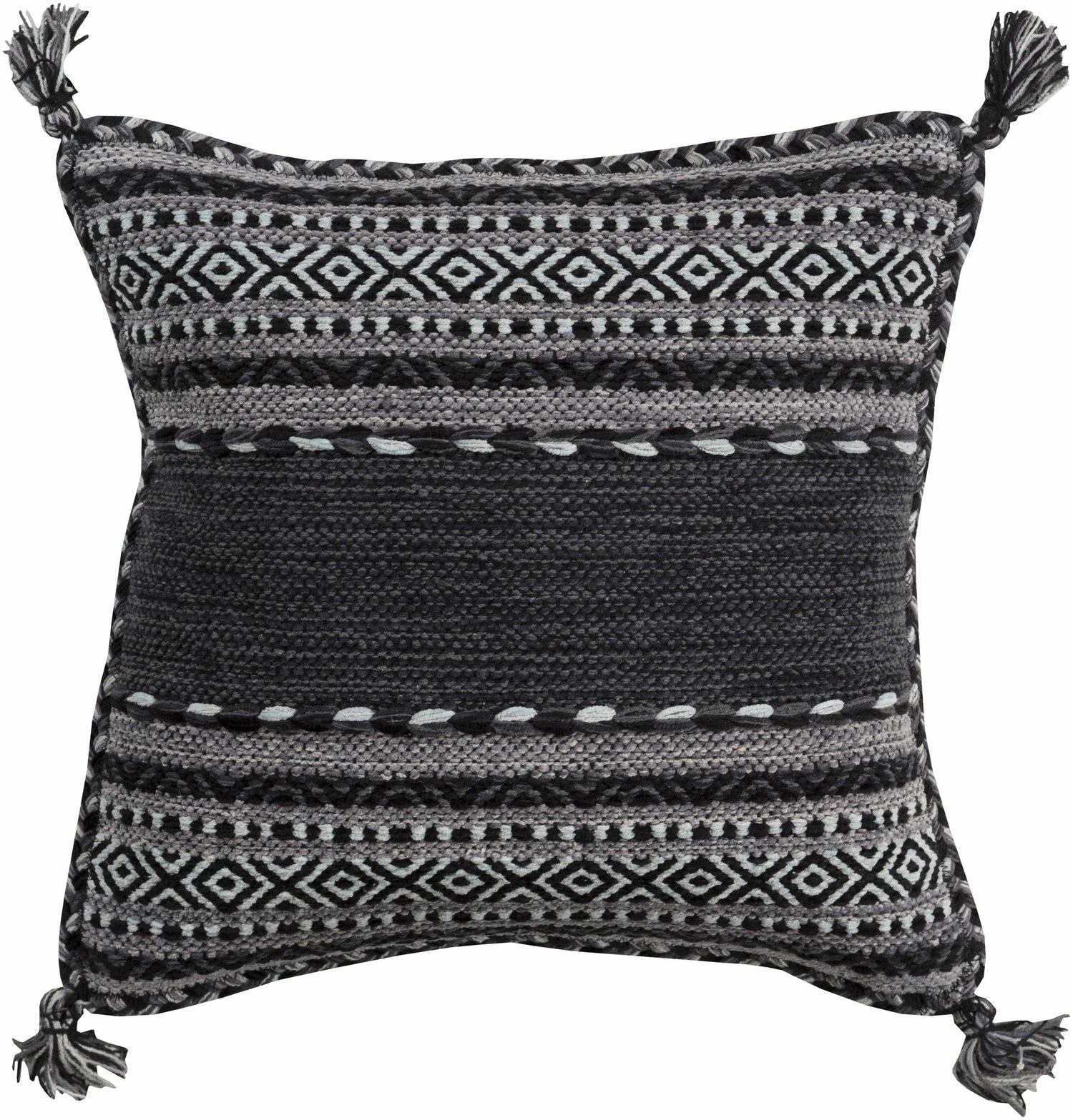 Bensalem Black Geometric Fringe Throw Pillow