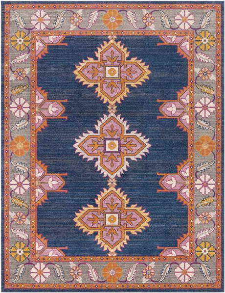 Olivia Traditional Ivory Cream/Teal/Yellow Area Rug