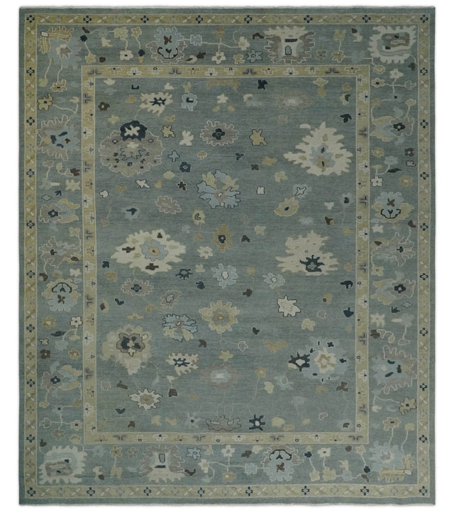 Antique Finish Multi Size Hand Knotted Oushak Silver and Beige Traditional Area Rug