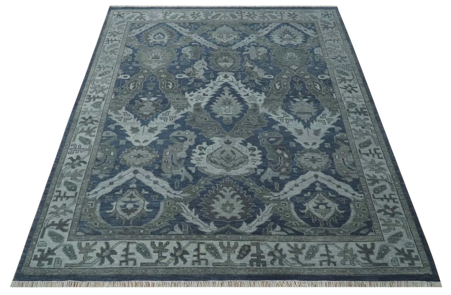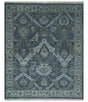 Antique style Blue, Charcoal and Silver Hand Knotted dragon Oushak Wool Area Rug