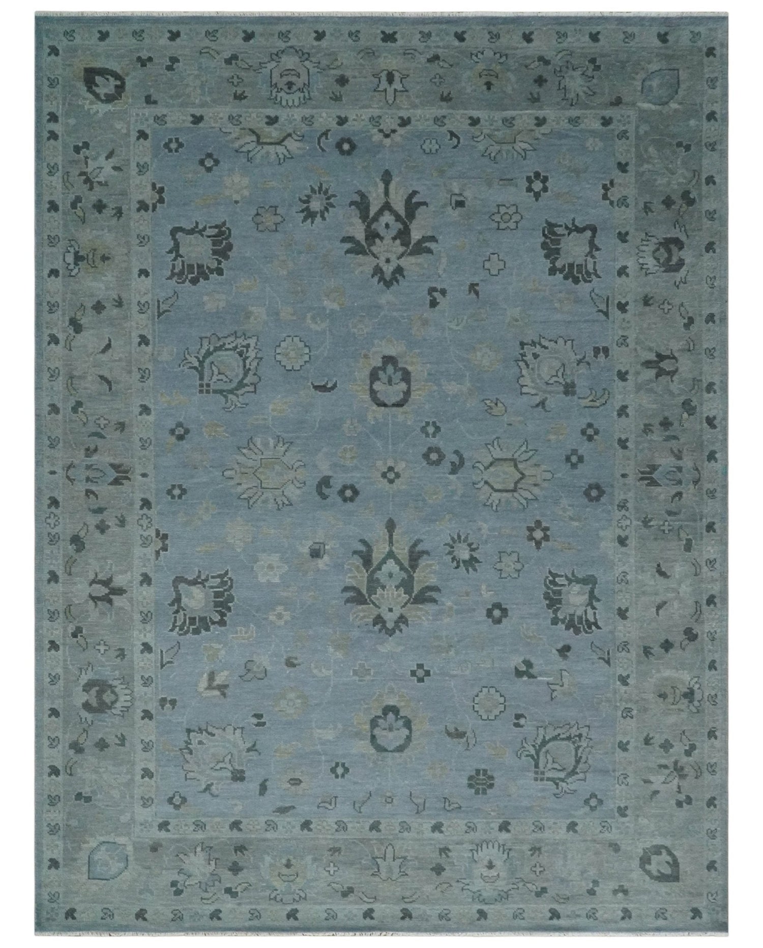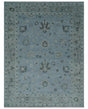 Antique style Blue, Silver and Charcoal Hand Knotted Oushak Wool Area Rug