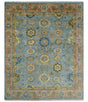 Blue and Rust Antique Traditional Oushak Area Rug
