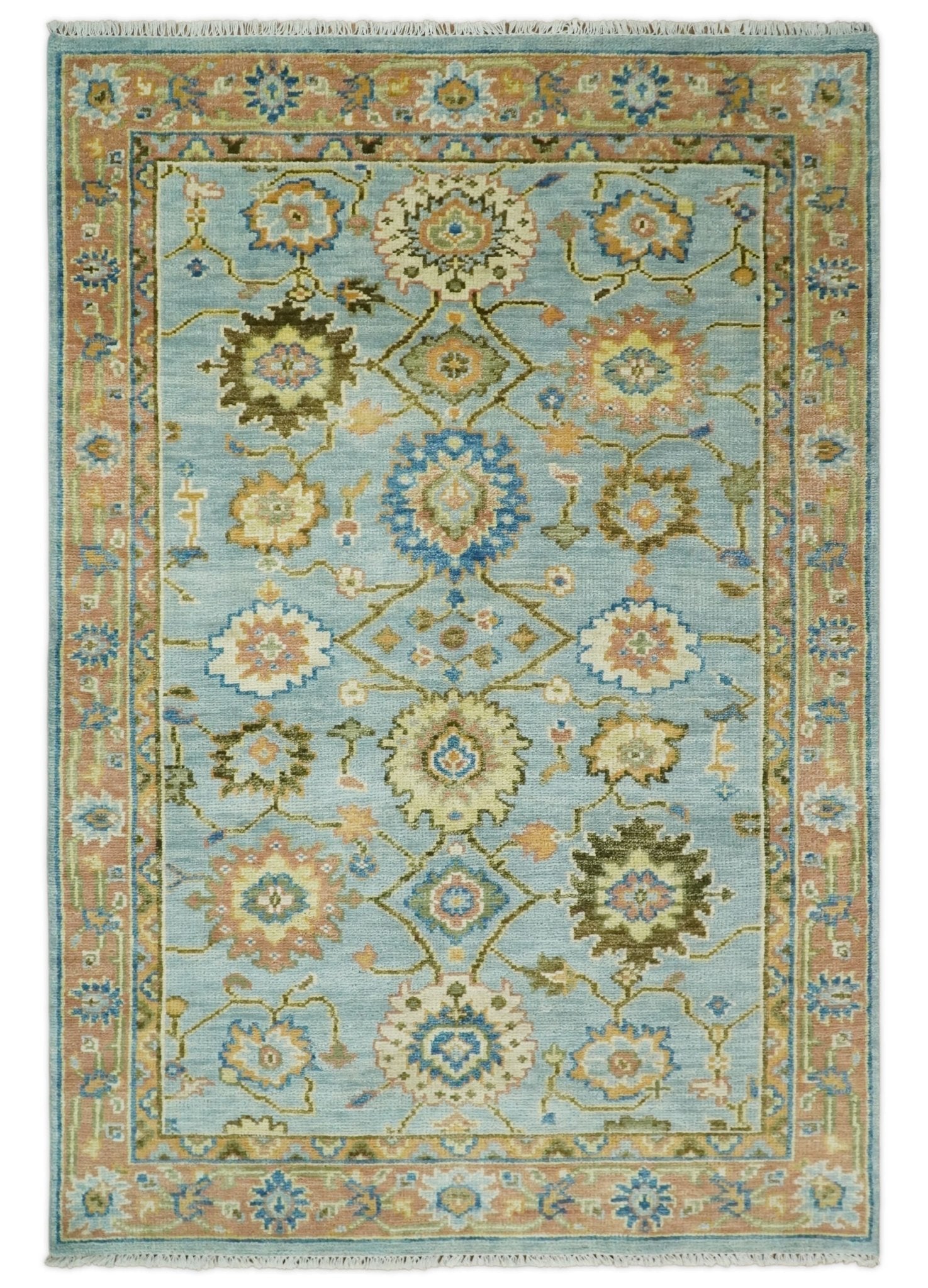This Hand-Knotted Rug has been Made with Handspun Wool. The beautiful colors and design of the rug carry a legacy of heirloom rugs. The large design of the rug completes your space without making it look busy. The rug is durable and can last for decades if treated right.
