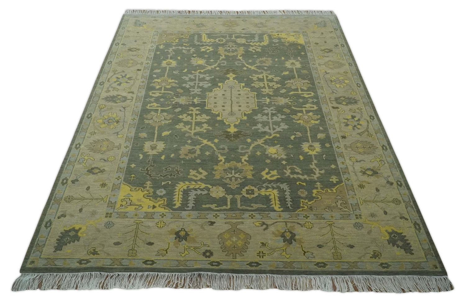 Charcoal, Olive and Mustard Hand knotted Oriental Oushak Custom Made wool Area Rug