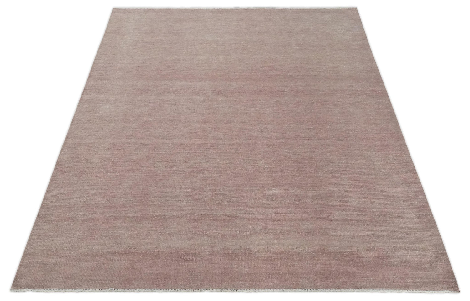 Contemporary Custom Made Modern Solid Peach Hand knotted Wool Area Rug