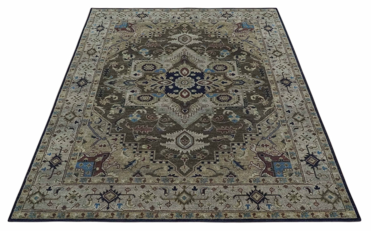 Custom Made Antique Style Brown, Beige and Blue Traditional wool Area Rug