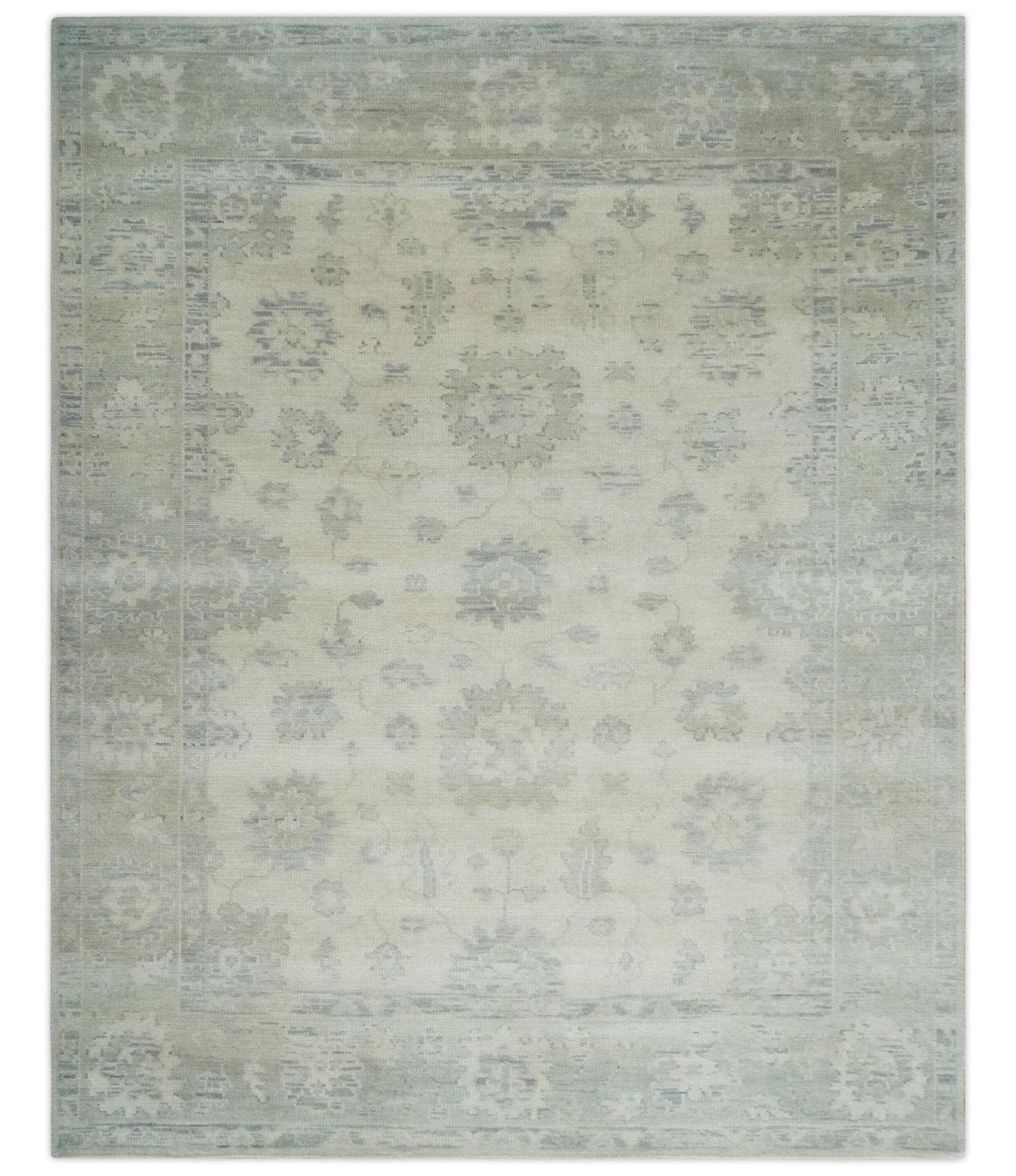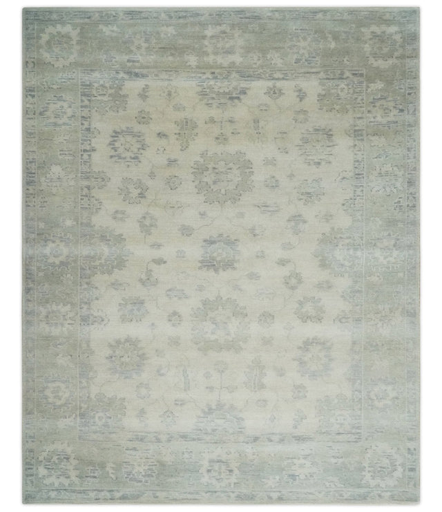 Custom Made Beige and Light Green Hand knotted Traditional Oushak Multi Size wool Area Rug