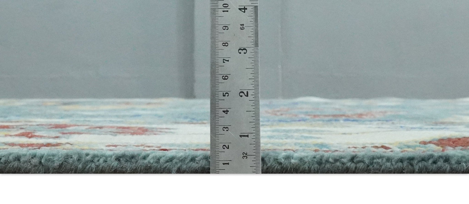 This specific rug is made in India, in the city of Bhadohi. Bhadohi is one of the biggest rug manufacturing cities. Carpet weaving in the region dates back to the 16th century during the reign of Akbar. The skilled artisans of Bhadohi have been carrying the tradition of rug-making for centuries.