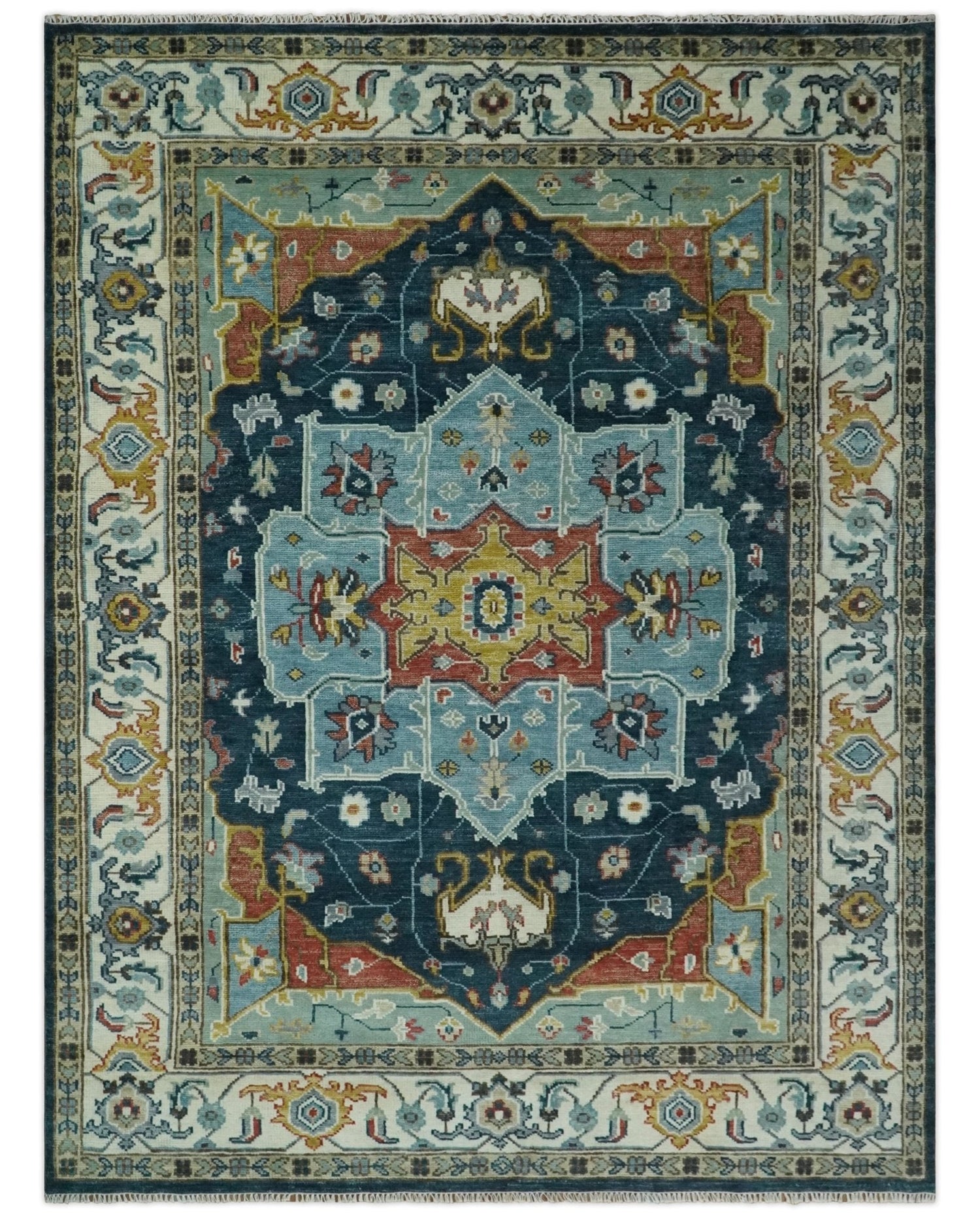 This Hand-Knotted Rug has been Made with Handspun Wool. The beautiful colors of the rug carry a legacy of the famous Heriz rug, the traditional design of the rug completes your space without making it look busy. Hand-knotted rugs are durable and can last for decades if treated right.