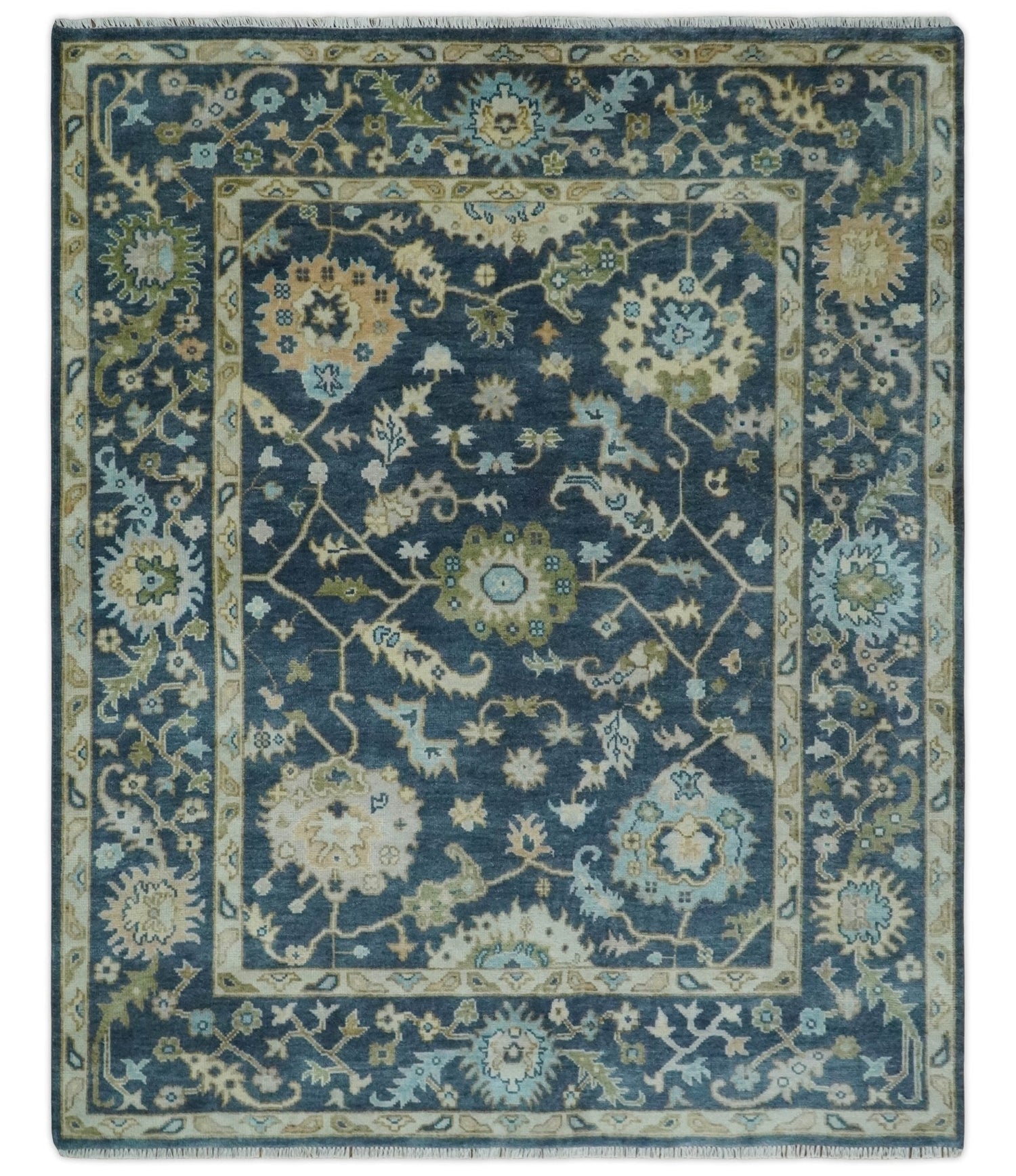 Custom Made Blue, Beige and Green Multi size Hand knotted Traditional Oushak Wool Area Rug