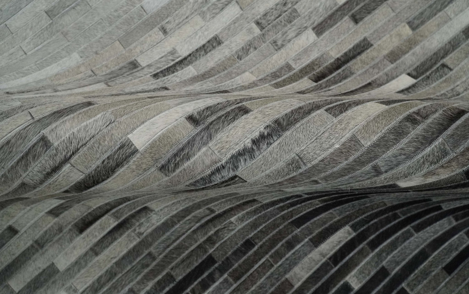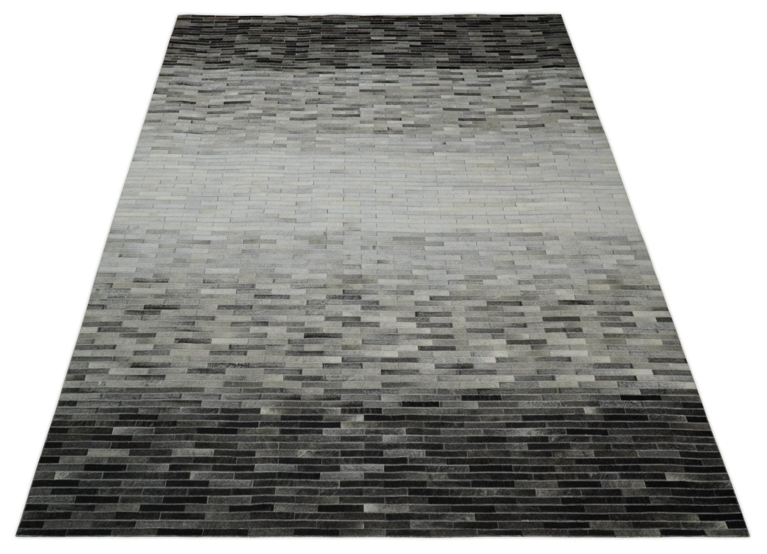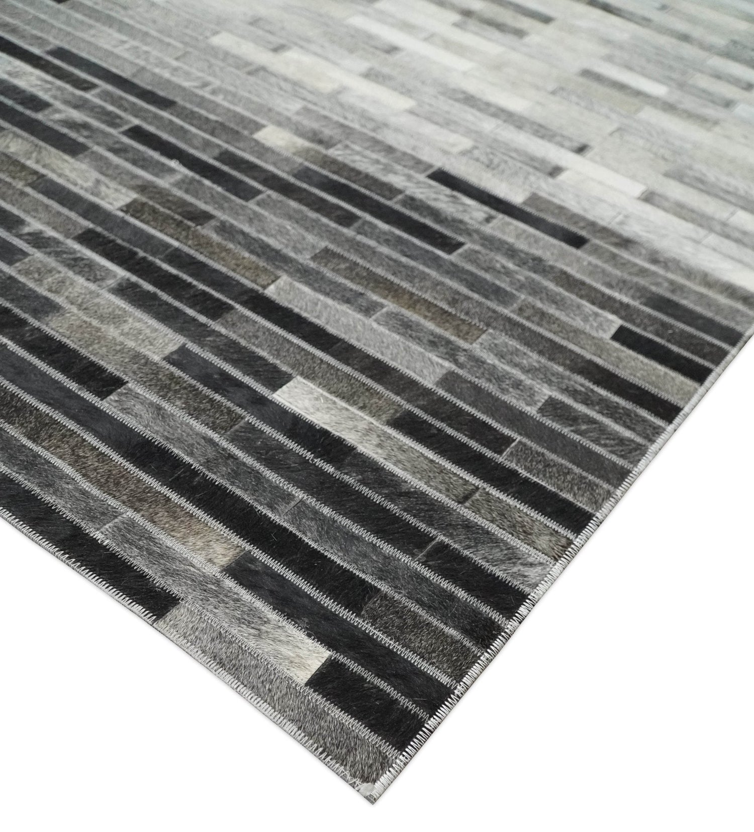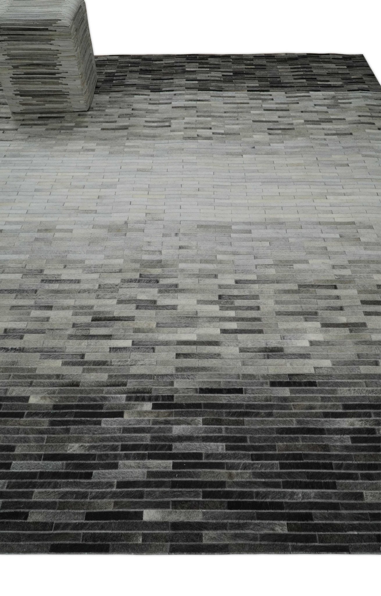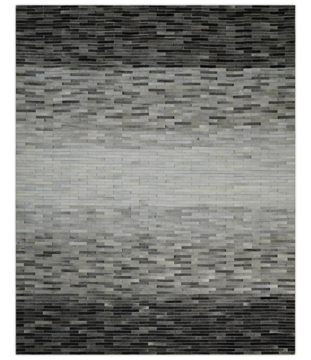 Custom Made Cowhide Leather Striped Gray and Silver Leather Rug, Modern Rug