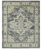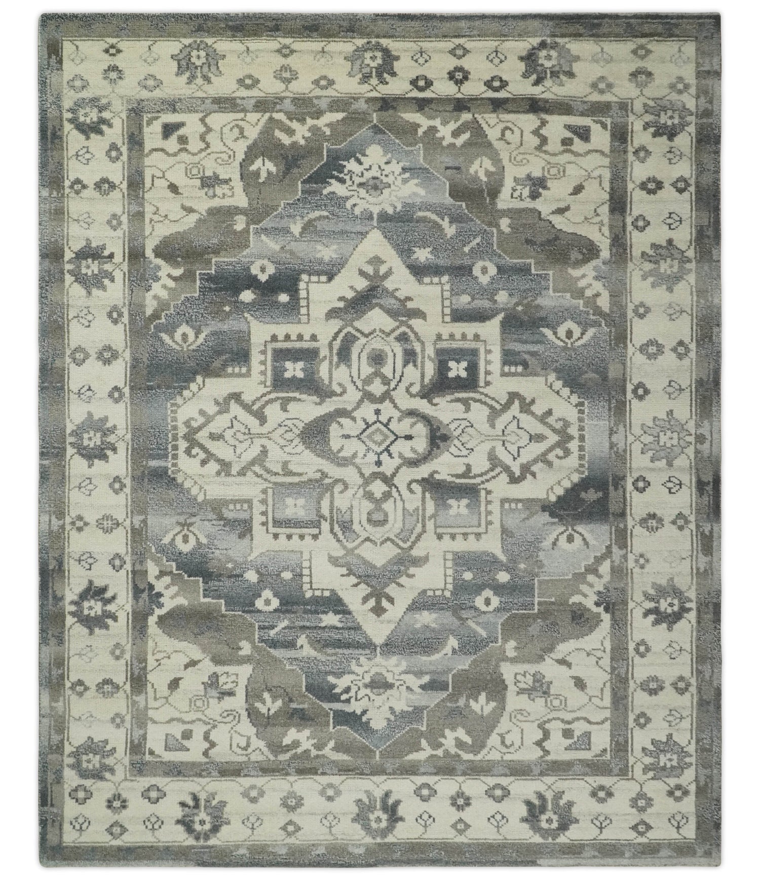 Custom Made Hand Knotted Ivory, Charcoal and Gray Traditional Medallion Natural Wool Area Rug, Kids, Living Room and Bedroom Rug