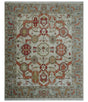 This traditional Heriz Serapi area rug has been hand-knotted with ivory, silver, and rust wool to create a stunning aesthetic. Its blend of colors will give your home a unique and timeless touch. Crafted with quality materials, its beauty will last for years to come.
