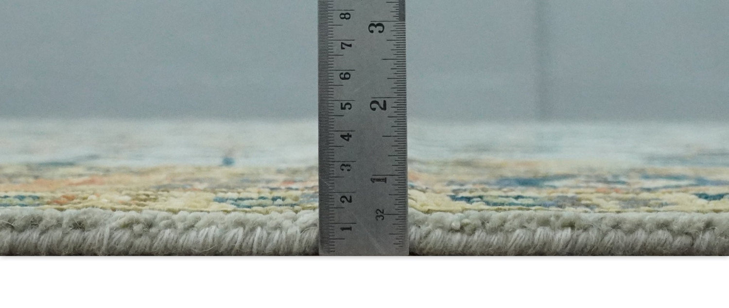This specific rug is made in India, in the city of Bhadohi. Bhadohi is one of the biggest rug manufacturing cities. Carpet weaving in the region dates back to the 16th century during the reign of Akbar. The skilled artisans of Bhadohi have been carrying the tradition of rug-making for centuries.