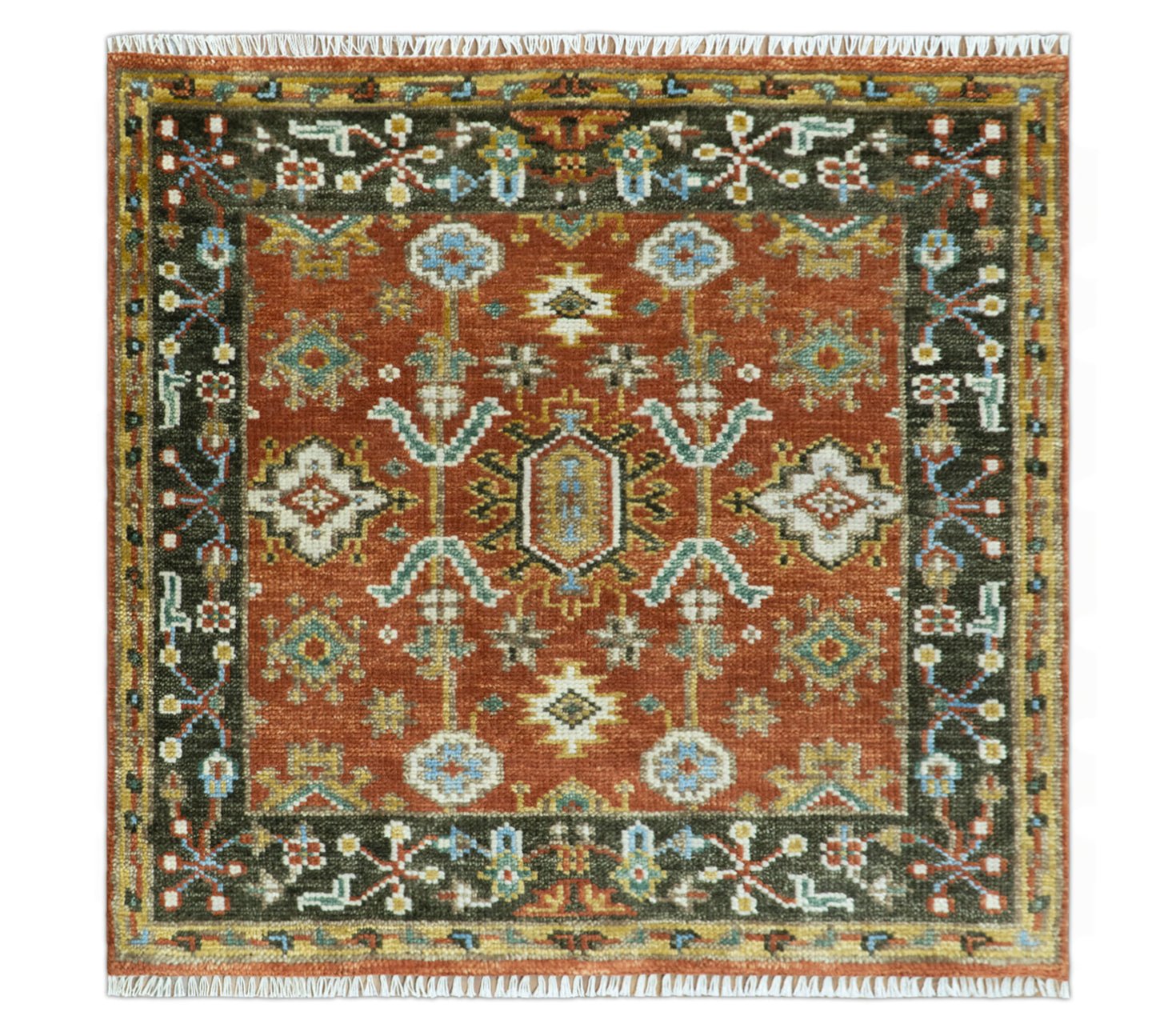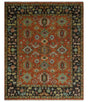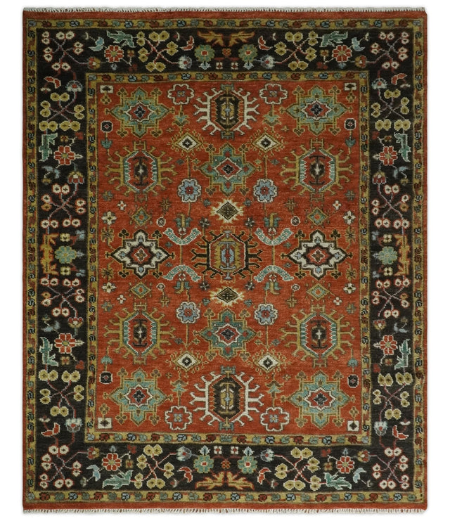 Custom Made Hand Knotted Rust and Black Traditional Wool Rug