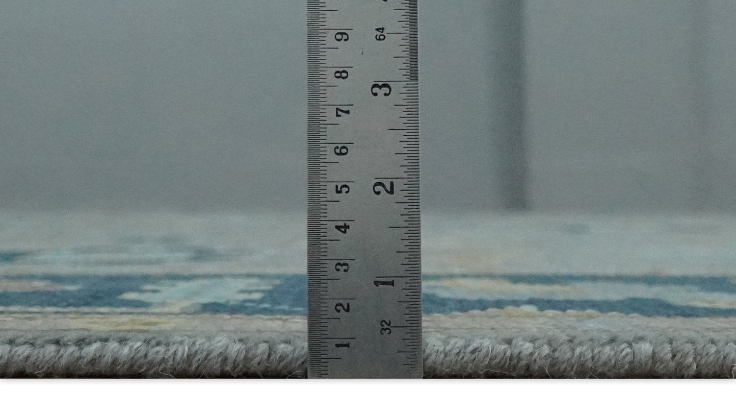 This beautiful custom-made hand-knotted area rug features a traditional Oushak design in a stunning blue and silver color combination. Crafted from superior quality wool, this piece is sure to impress with its intricate knotting and intricate detailing. Add a classic style to any room with this exquisite Oushak wool rug.