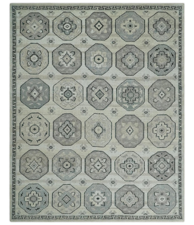 Custom Made Hand Knotted Turkish Silver, Beige and Gray Traditional Antique Low Pile Area Rug