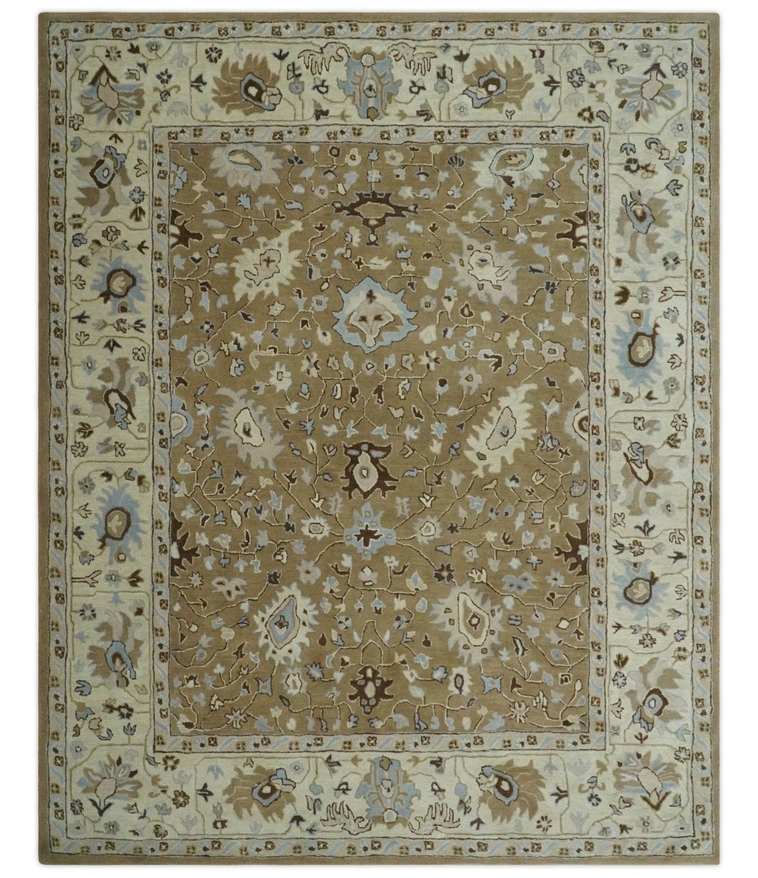 Custom Made Hand Tufted Earthy Camel and Beige Traditional Wool Oushak Rug
