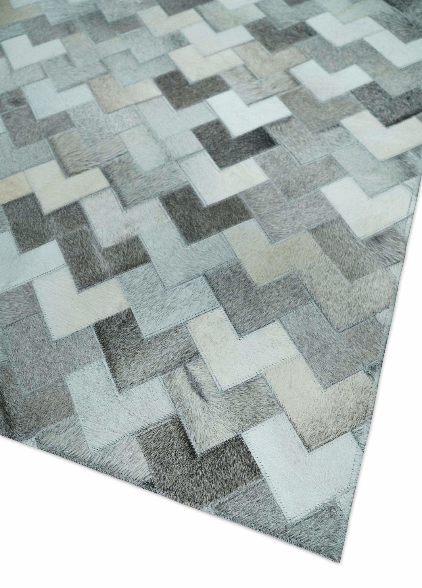 Custom Made Ivory and Gray Leather Rug | Hairon Genuine Leather, Cowhide rug, Chevron Tile Geometric Rug