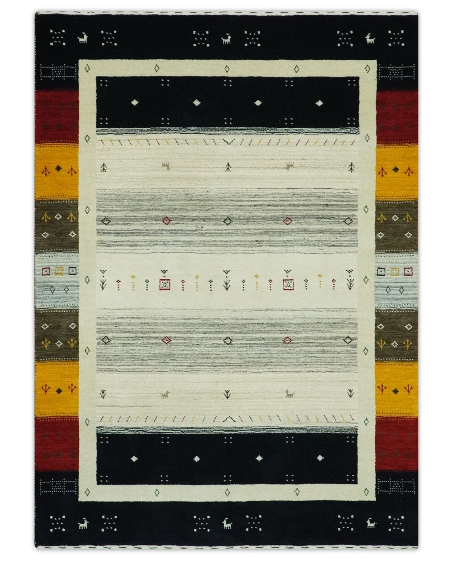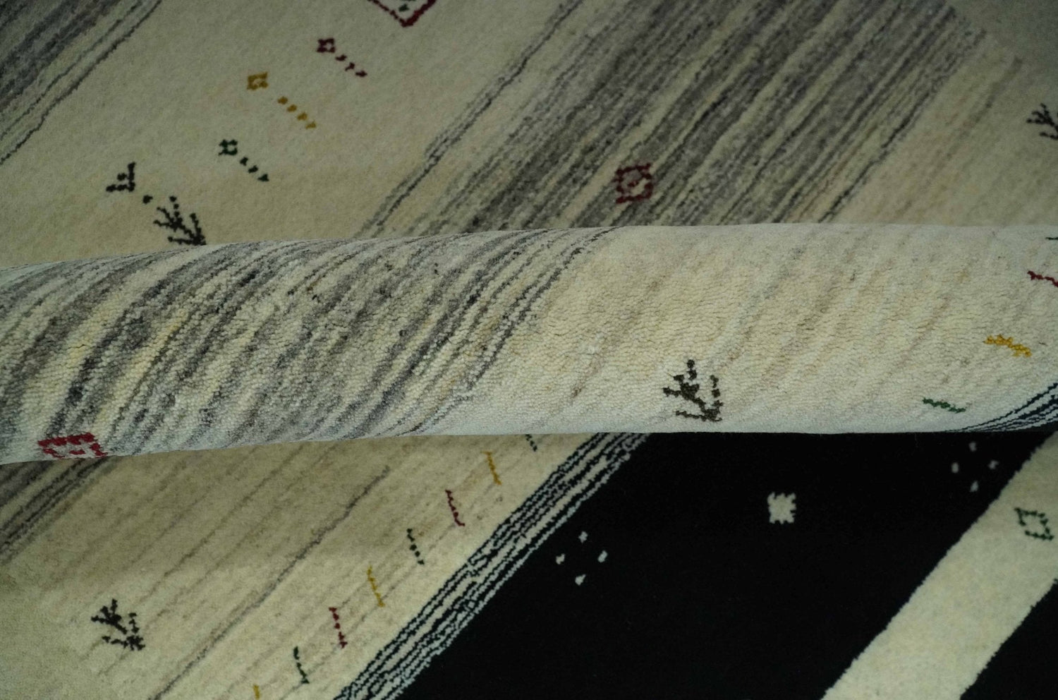 Custom Made Tribal Gabbeh Ivory, Black, Gold and Maroon Stripes design Traditional Wool Area Rug