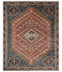 Experience craftsmanship and quality with this custom-made, hand-knotted wool rug. Featuring a traditional medallion design in rust and charcoal hues, this vintage-style rug adds a timeless touch to any space.