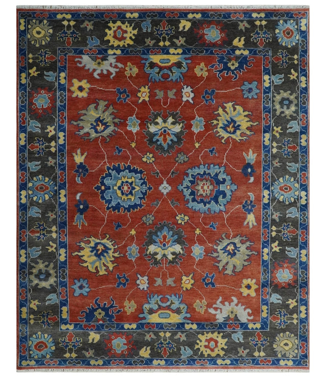 Hand Knotted Brown, Blue and Charcoal colorful Traditional Oushak Wool Area Rug