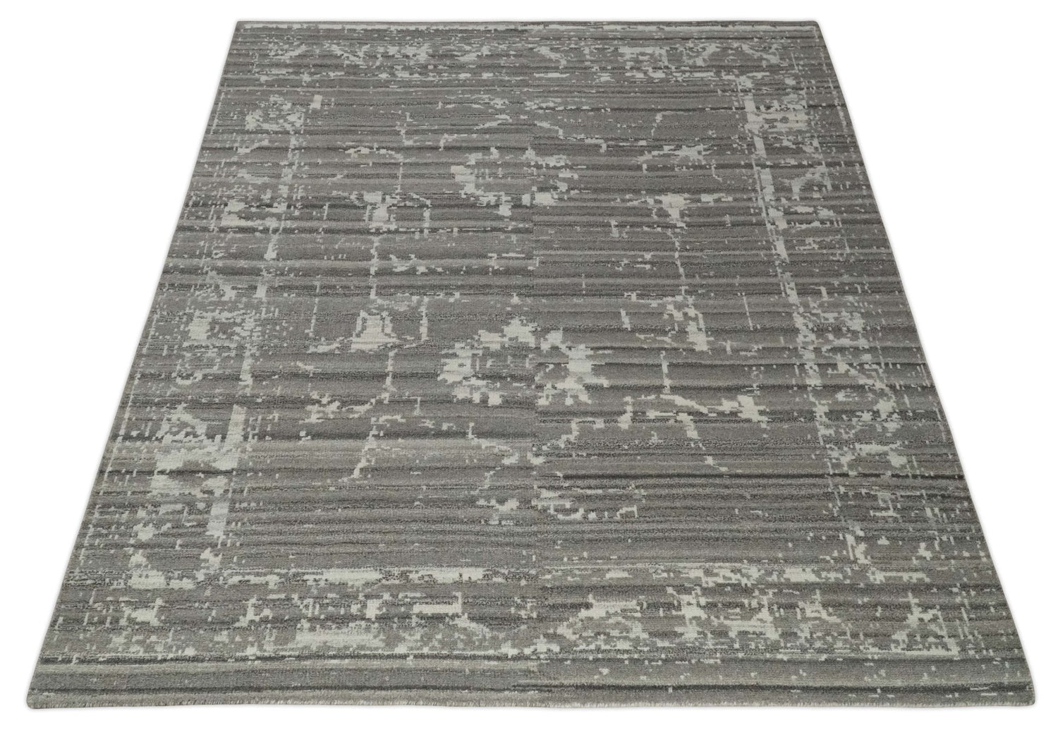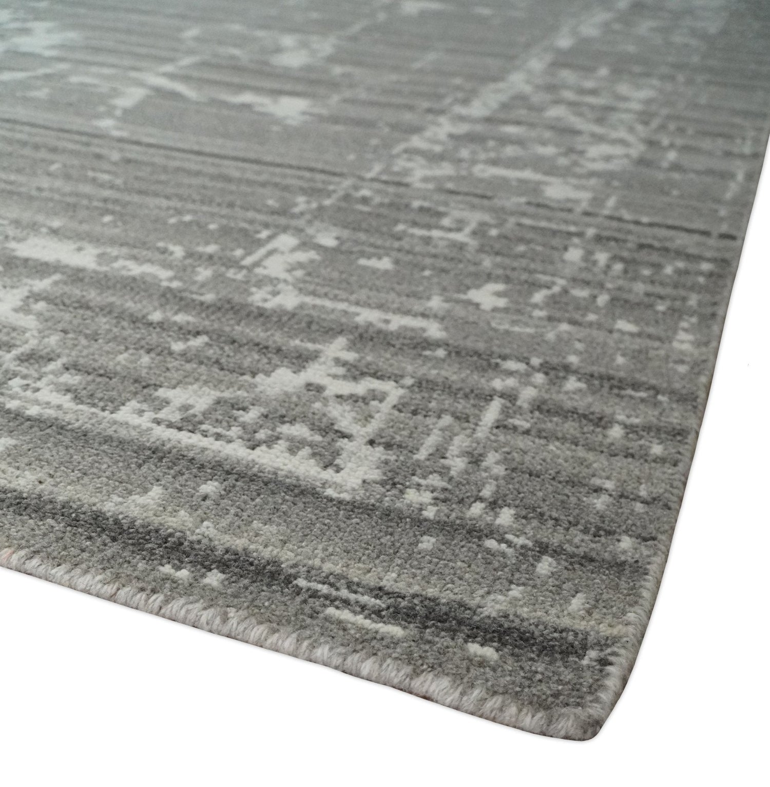 Hand Knotted Ivory and Charcoal Traditional Abstract Natural Wool Custom Made Area Rug, Kids, Living Room and Bedroom Rug