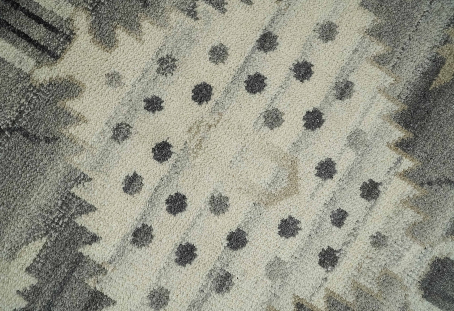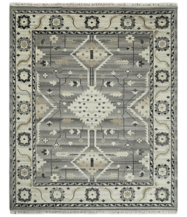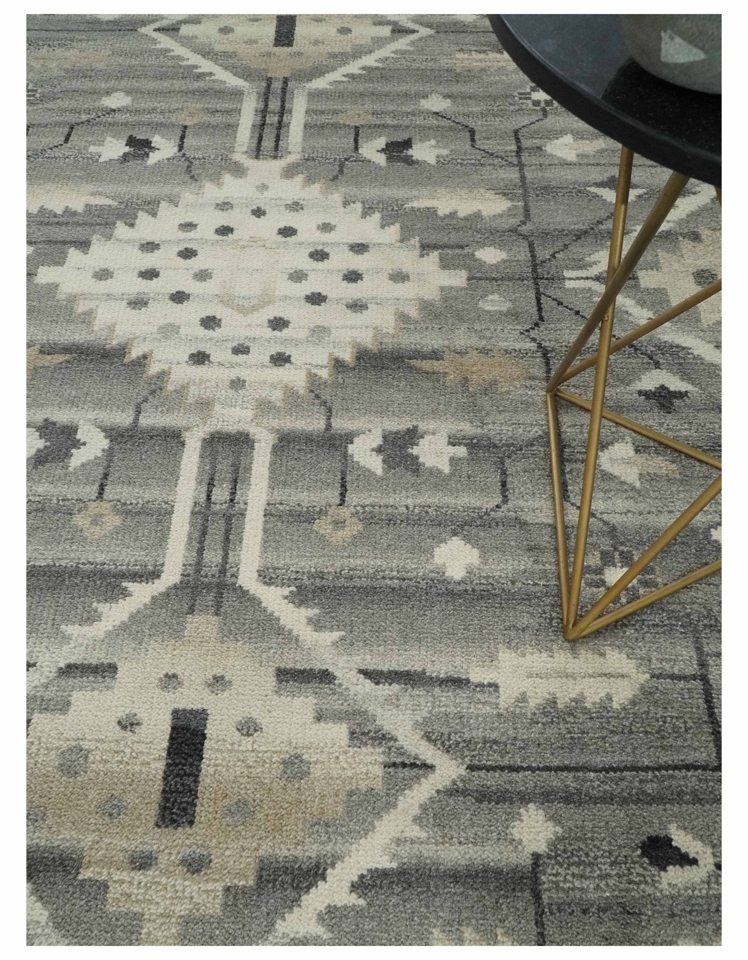 Hand Knotted Ivory and Gray Traditional Tribal Natural Wool Custom Made wool Area Rug, Kids, Living Room and Bedroom Rug