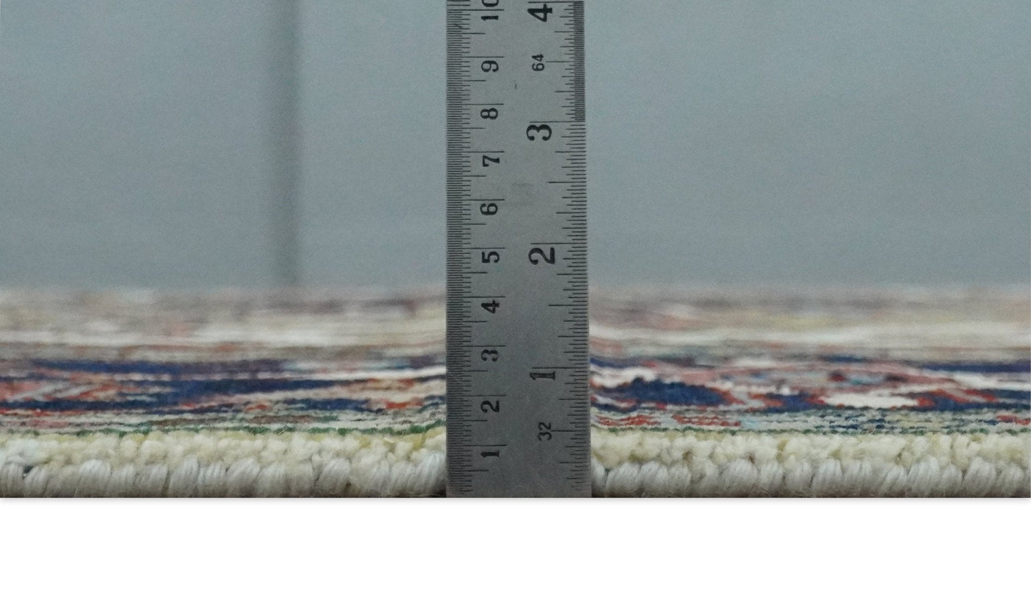 This specific rug is made in India, in the city of Bhadohi. Bhadohi is one of the biggest rug manufacturing cities. Carpet weaving in the region dates back to the 16th century during the reign of Akbar. The skilled artisans of Bhadohi have been carrying the tradition of rug-making for centuries.
