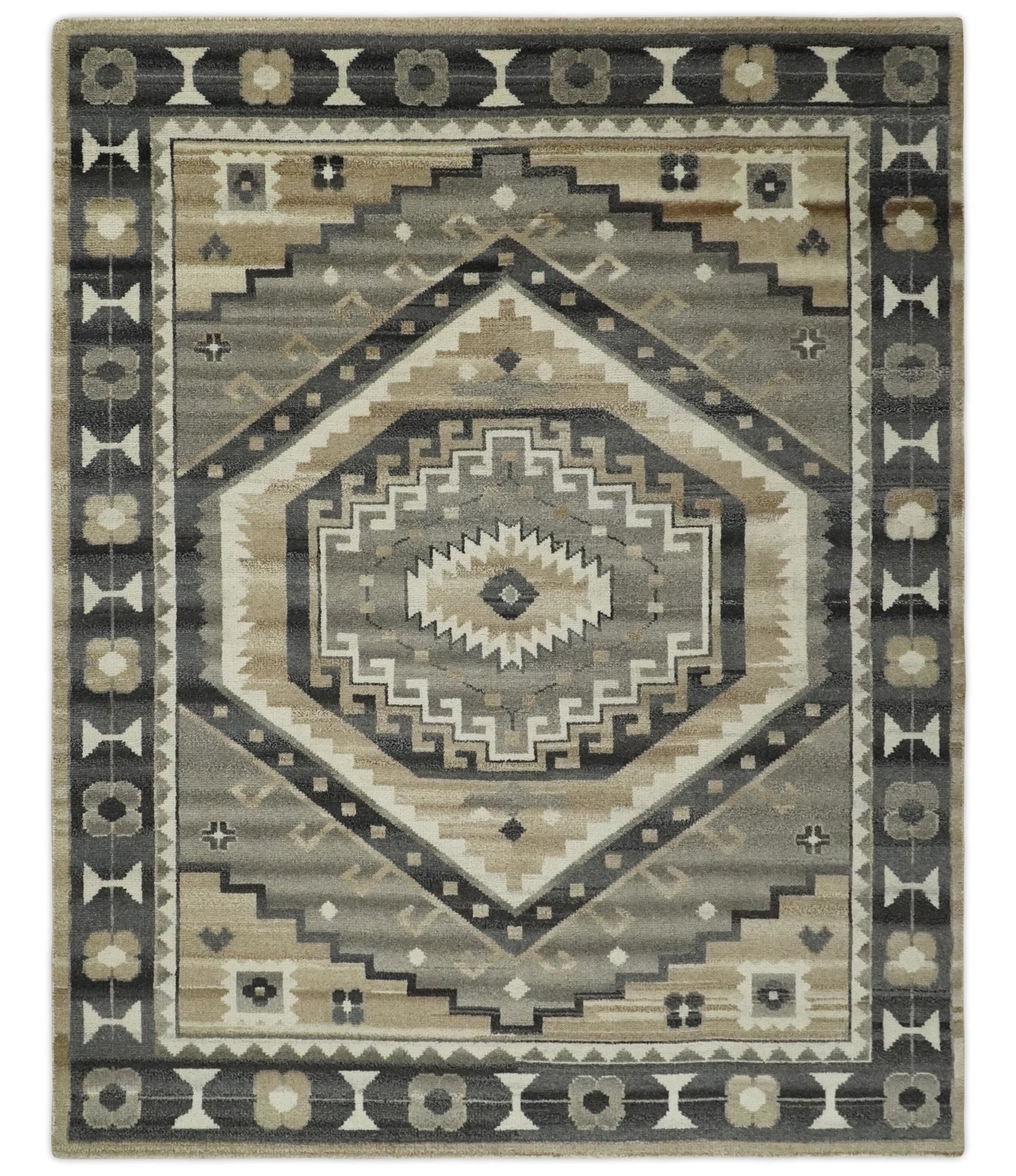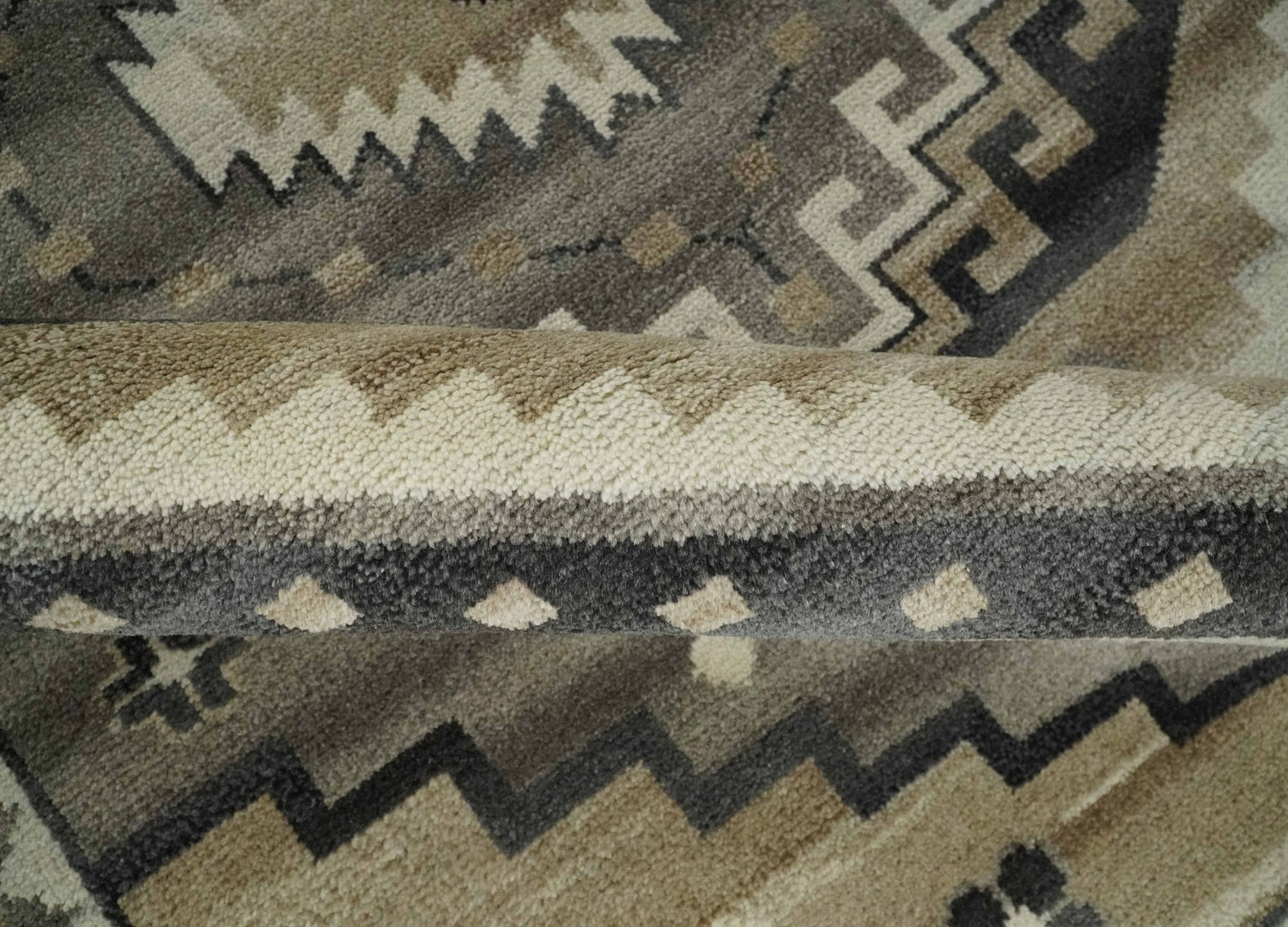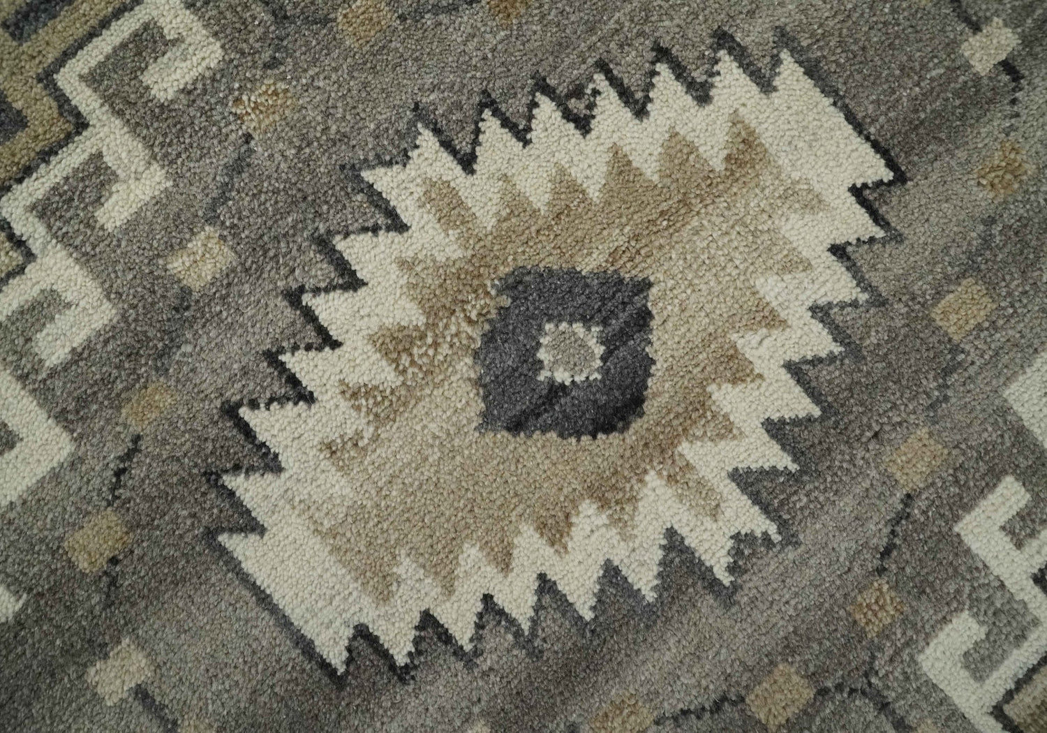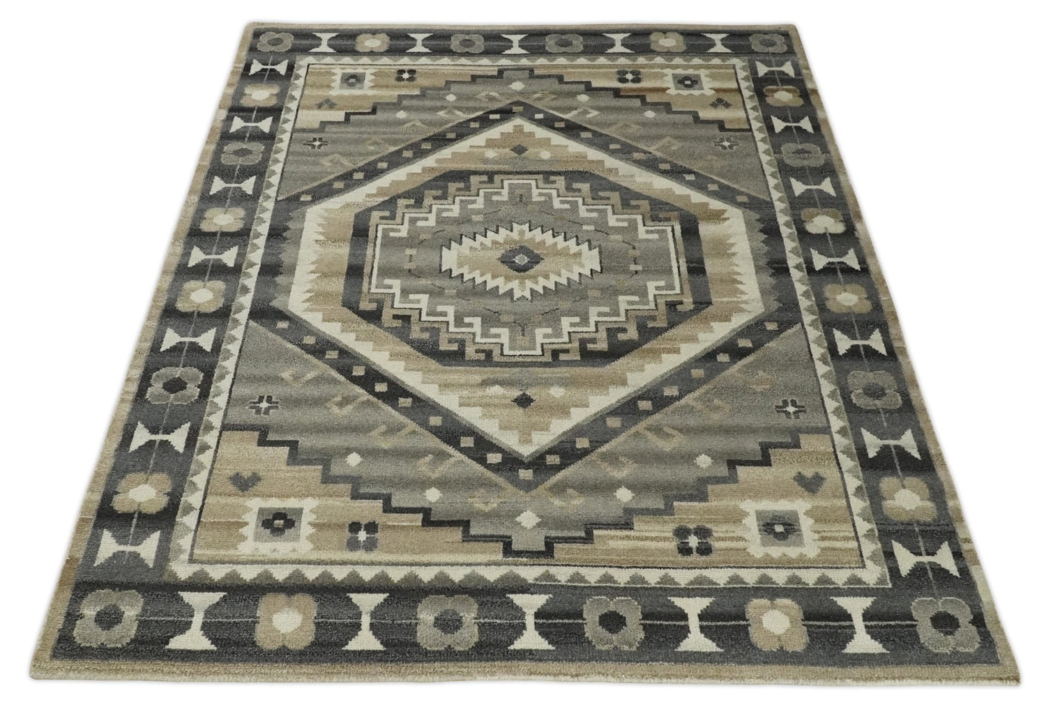 Hand Knotted Ivory, Charcoal and Beige Traditional Medallion Natural Wool Multi Size Area Rug, Kids, Living Room and Bedroom Rug