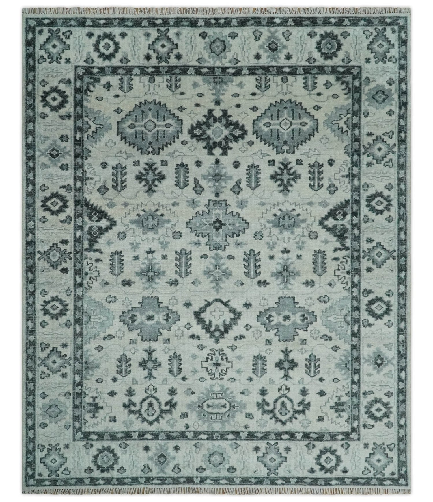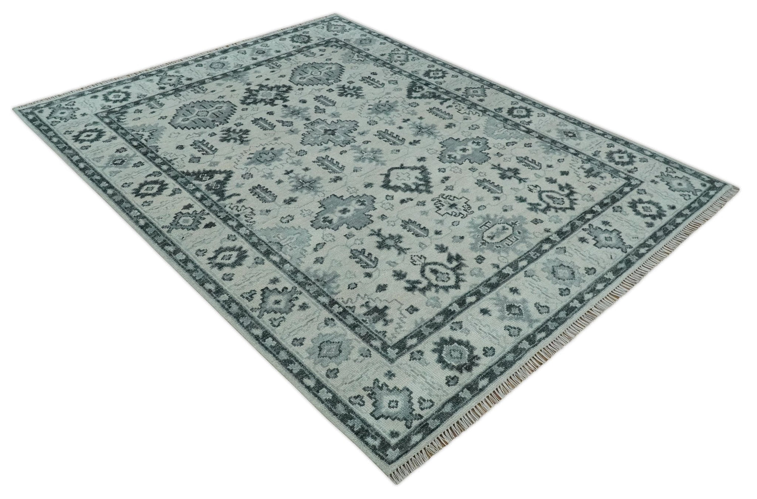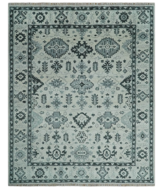 Hand Knotted Multi size Ivory, Silver and Charcoal Antique Turkish Oushak Wool Area Rug