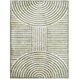 Dive into a realm of serene elegance with the Marcela Modern Grass Green Washable Area Rug. This isn't just a rug; its a tactile experience, a whisper of Art Deco sophistication brought to life in your living space. Born from the skilled hands of Turkish artisans and meticulously machine-woven, this rug features a mesmerizing geometric pattern of concentric arches and horizontal stripes, rendered in soothing grass green and soft cream hues. Its high-pile polyester construction promises a cloud-like softness, transforming any room into a haven of comfort.